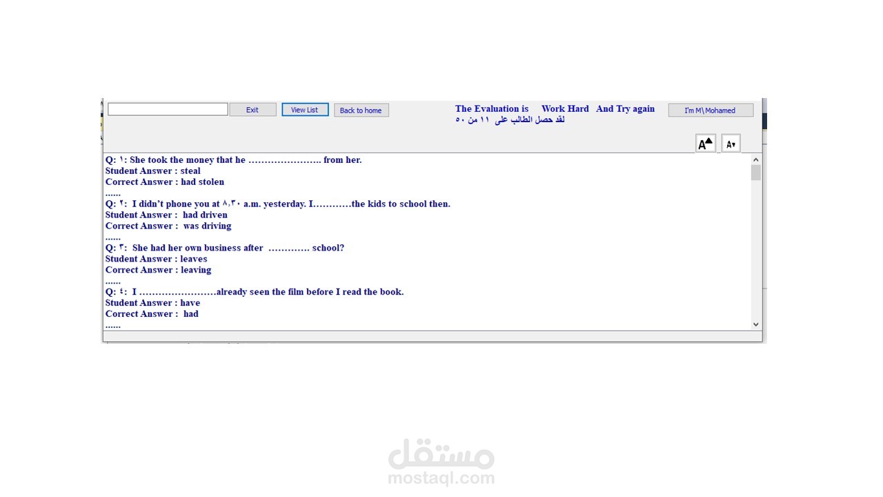 - يقوم البرنامج بالتصحيح وعرض النتيجة