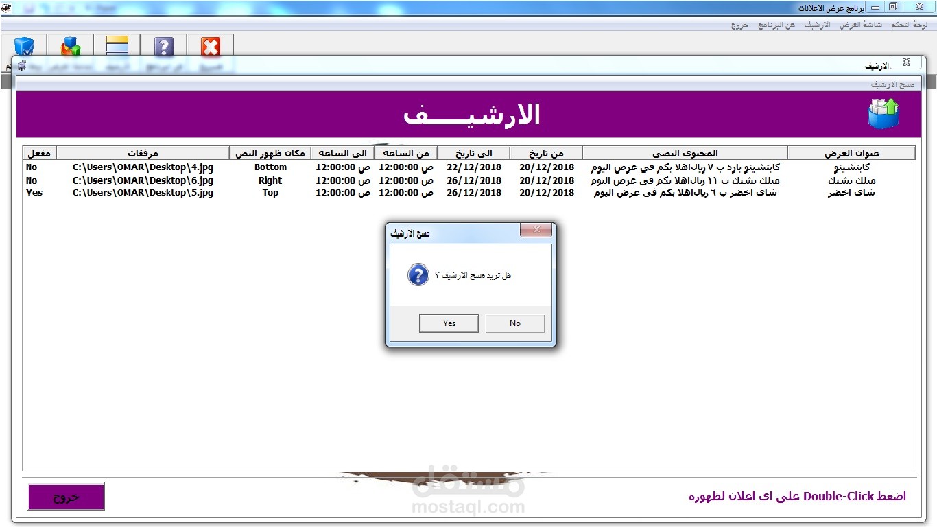 كما يمكن التعديل على اى اعلان موجود فى الارشيف.