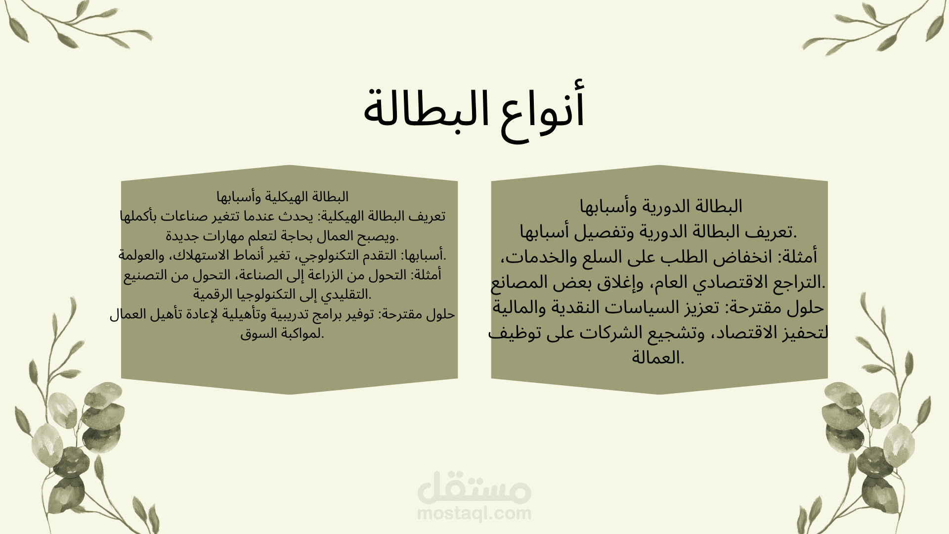 تحليل أسباب البطالة في السياقين المحلي والعالمي.