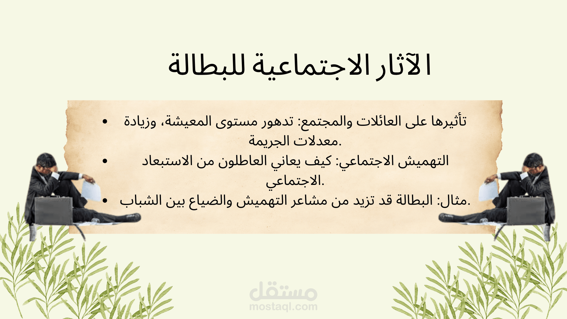 تسليط الضوء على الآثار الاجتماعية والاقتصادية للبطالة.