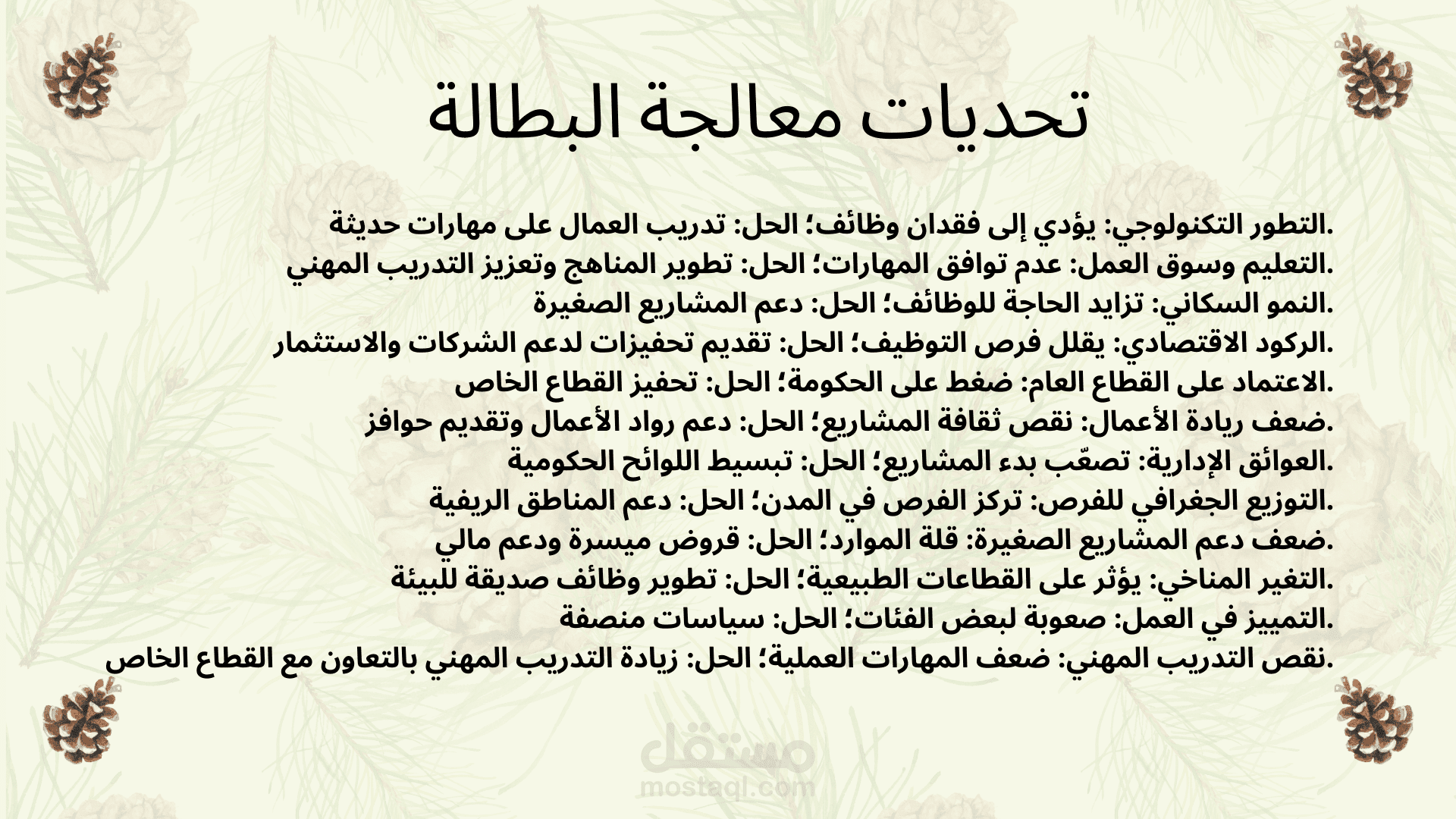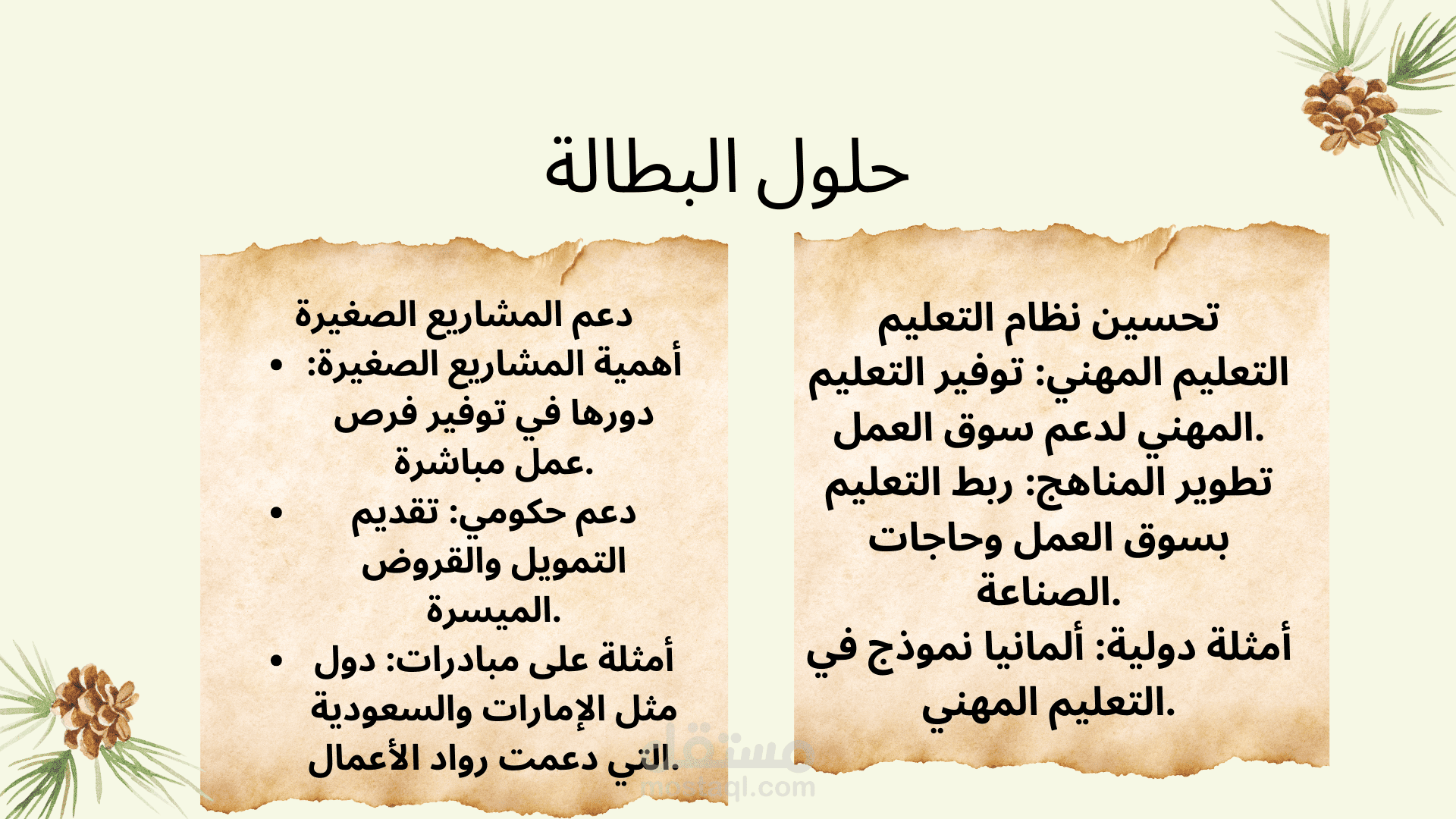 تقديم حلول واقعية وقابلة للتطبيق لمواجهة مشكلة البطالة.
