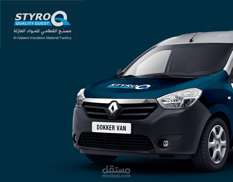 تصميم احترافي مميز لسيارة شركة "القطامي لمواد العزل" يبرز هوية العلامة التجارية بشكل واضح وجذاب. التصميم يركز على: