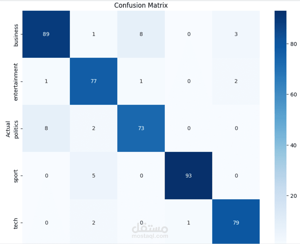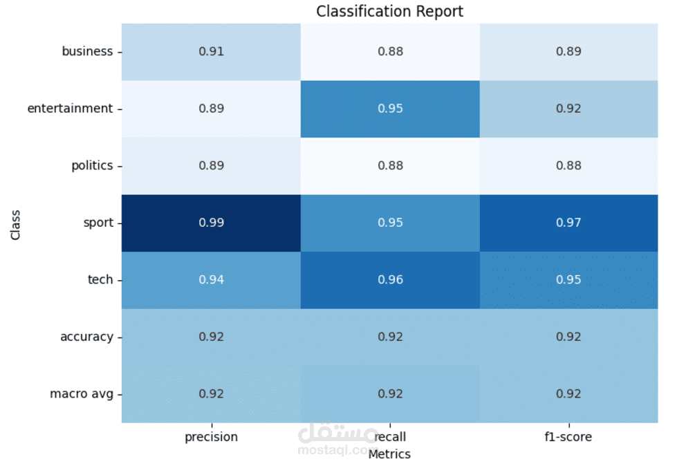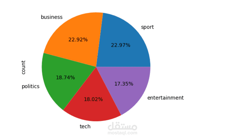 تم استخدام مجموعة بيانات [bbc] التي تحتوي على 2225 عينة موزعة على 5 classes.