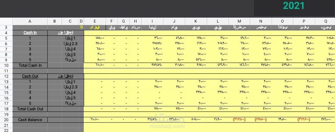 شيت إكسيل لقائمة ال Cash In &Cash out