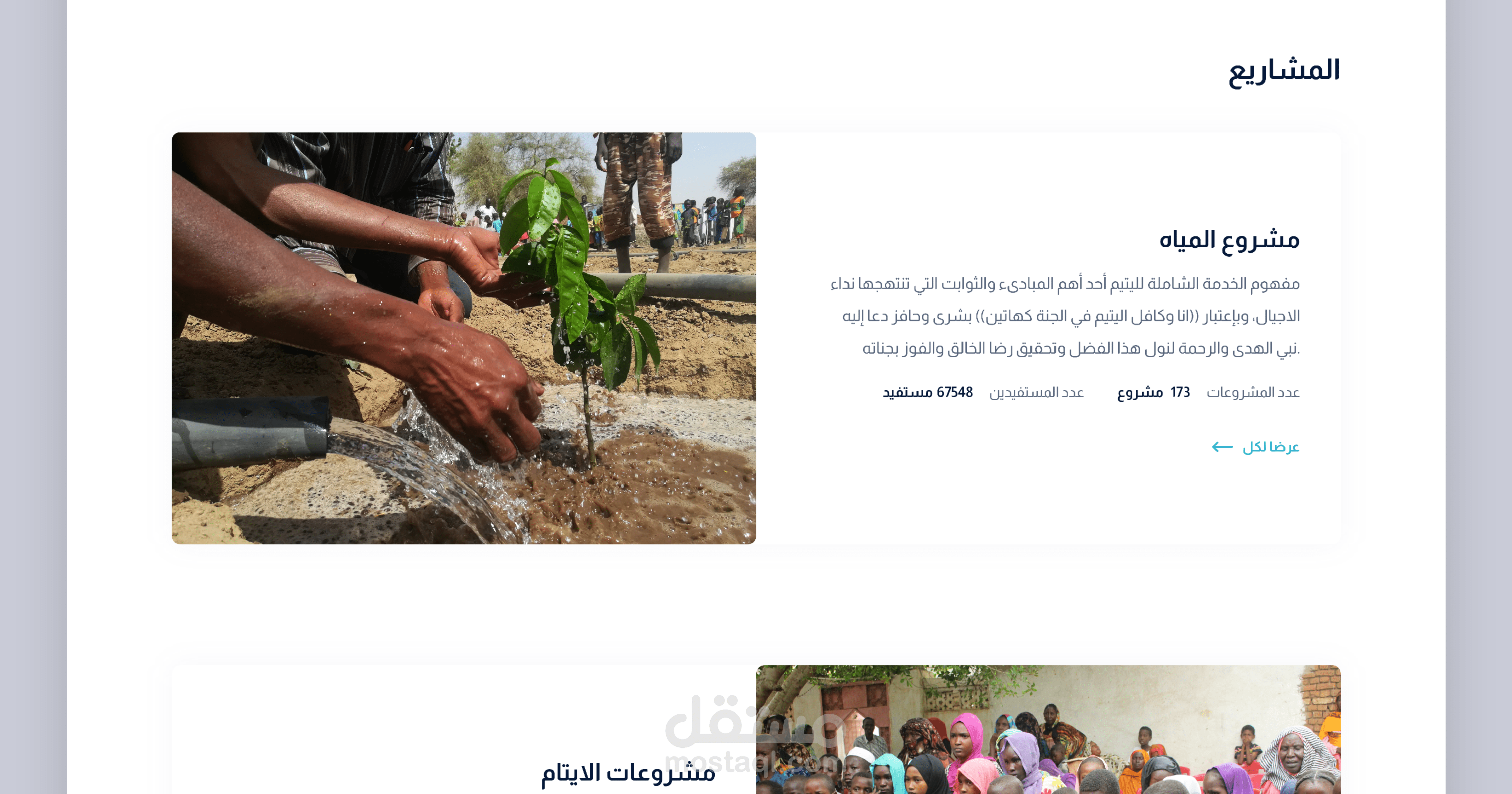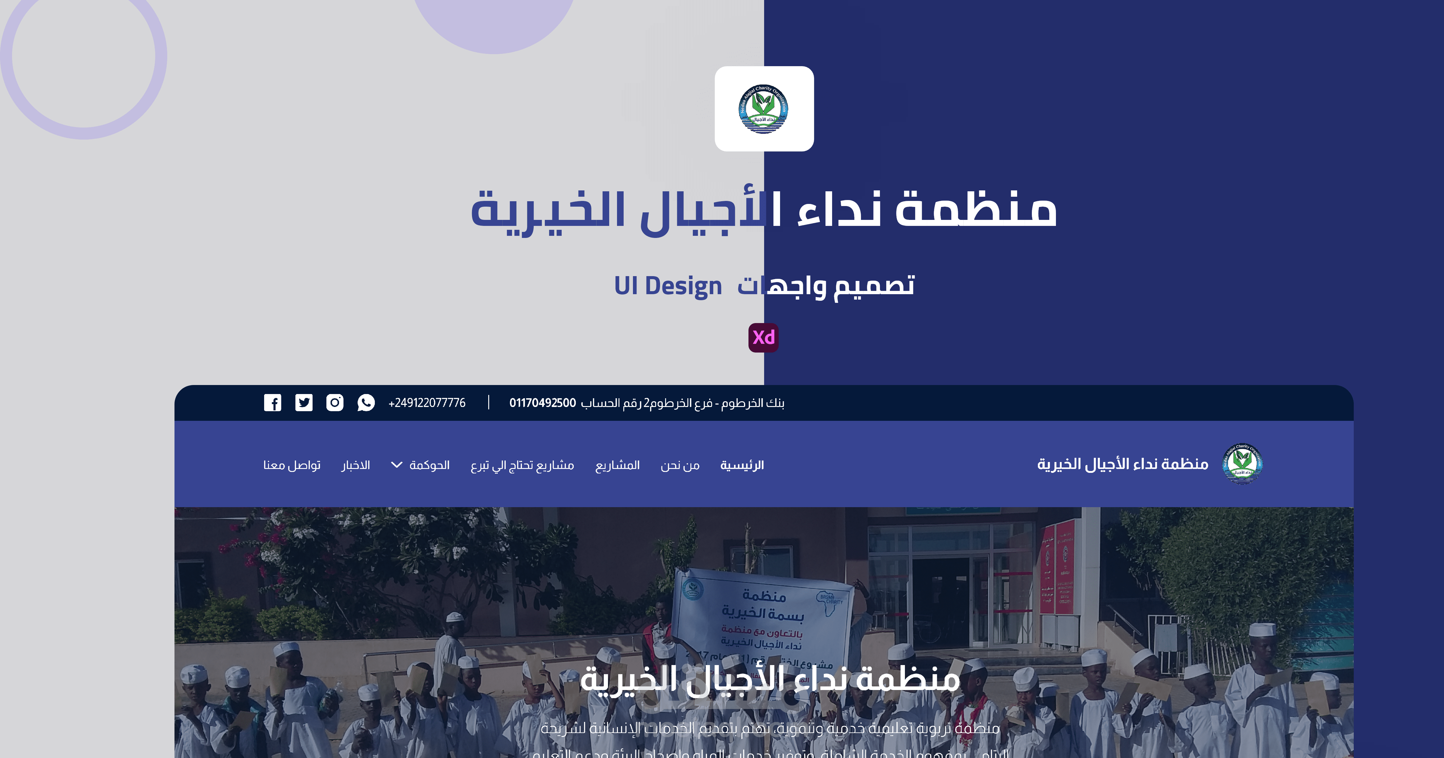 تصميم موقع يعرض خِدْمَات منظمة نداء الأخيال الخيرية من المشروعات المكتملة والمشاريع التي تحتاج الي تبرع