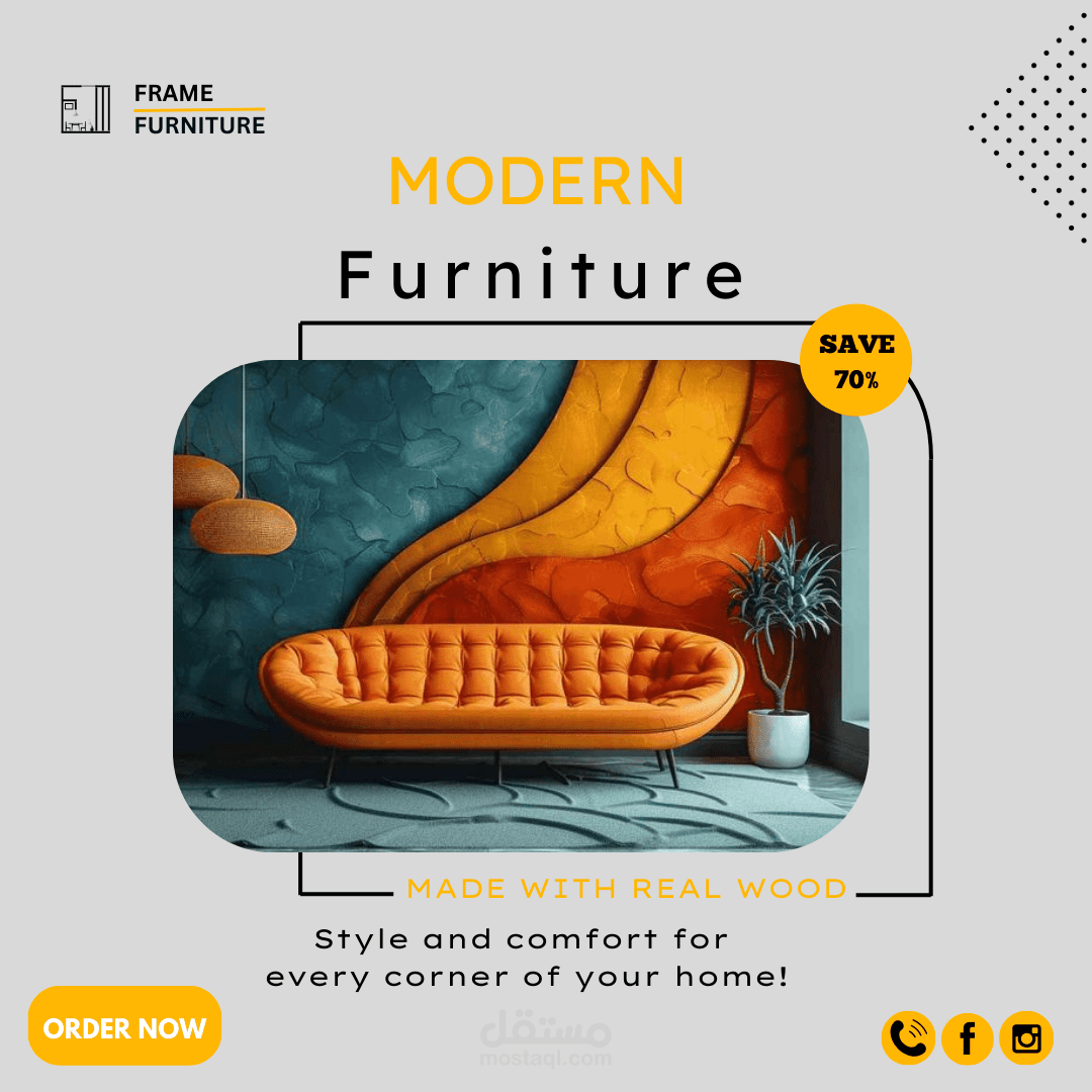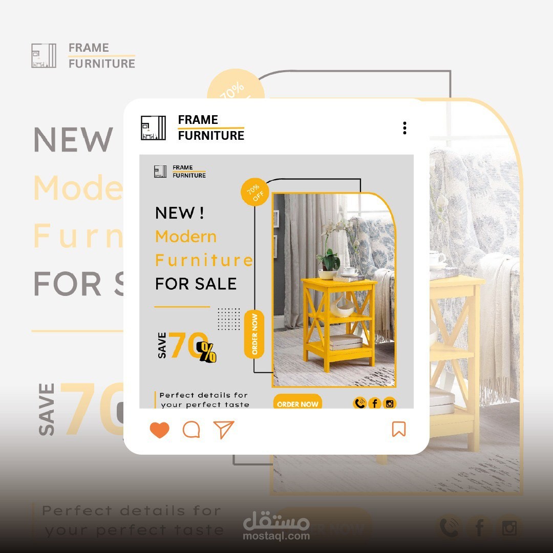 قمت بتنفيذ لوجو و قوالب لمنشورات لاحدى شركات الاثاث وكانت هذه التصميمات عبارة عن: