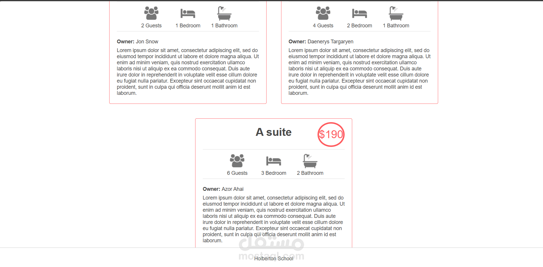 مشروع لموقع Airbnb