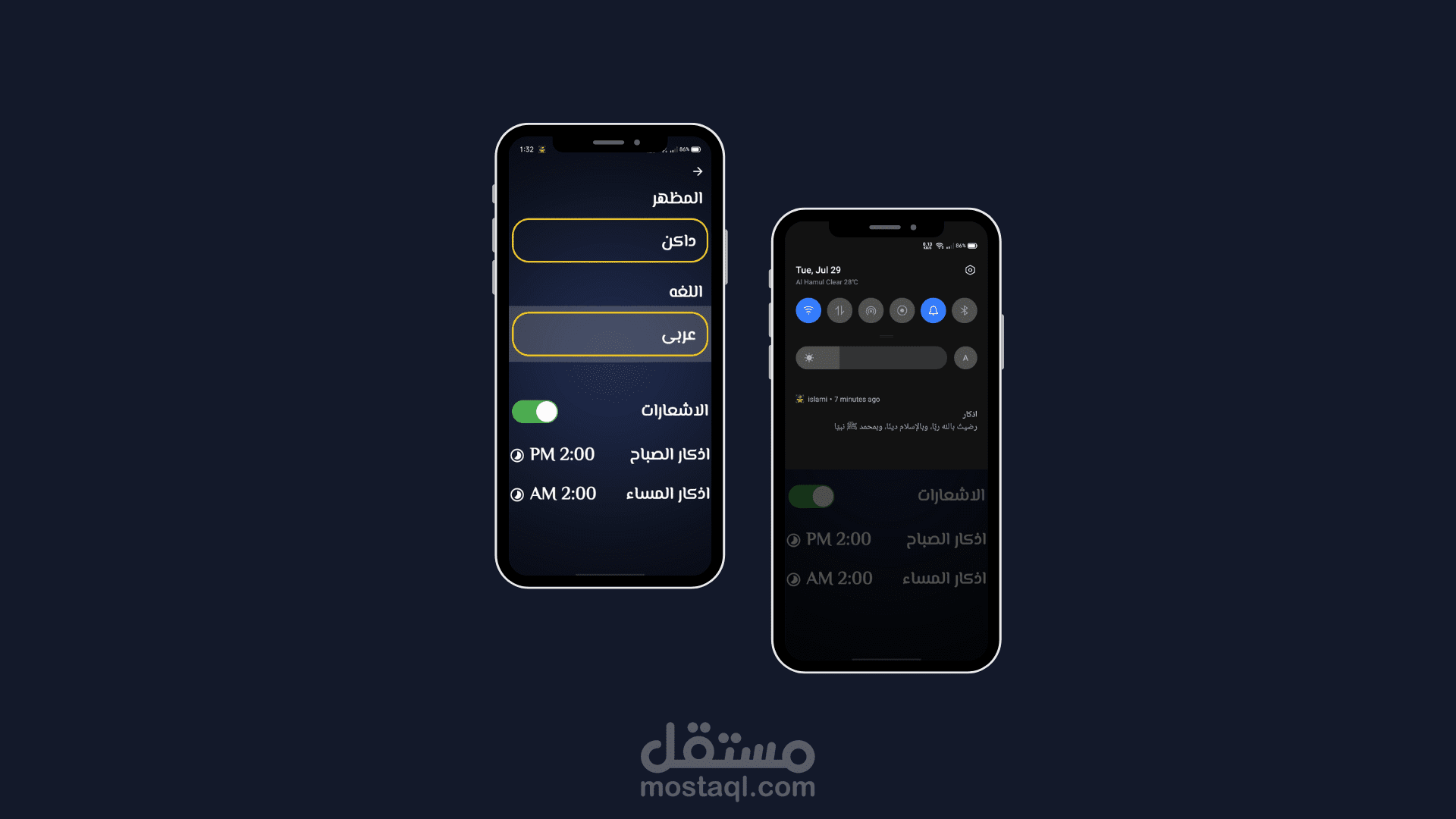 إشعارات دورية (كل ربع ساعة) للتذكير بالذكر والاستغفار