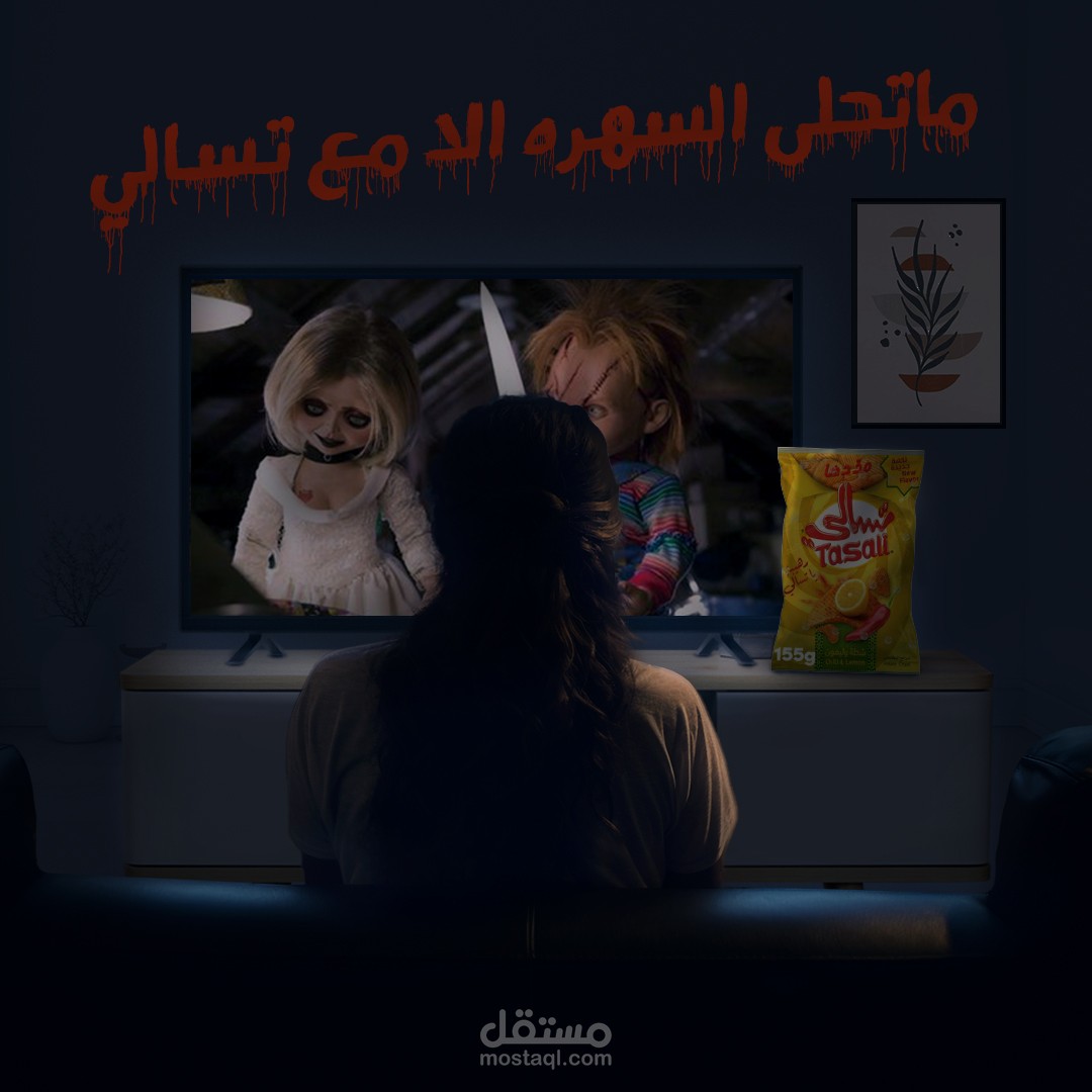 عباره عن فتاه تشاهد فيلم السهره والسهره ماتحلى الا مع تسالي