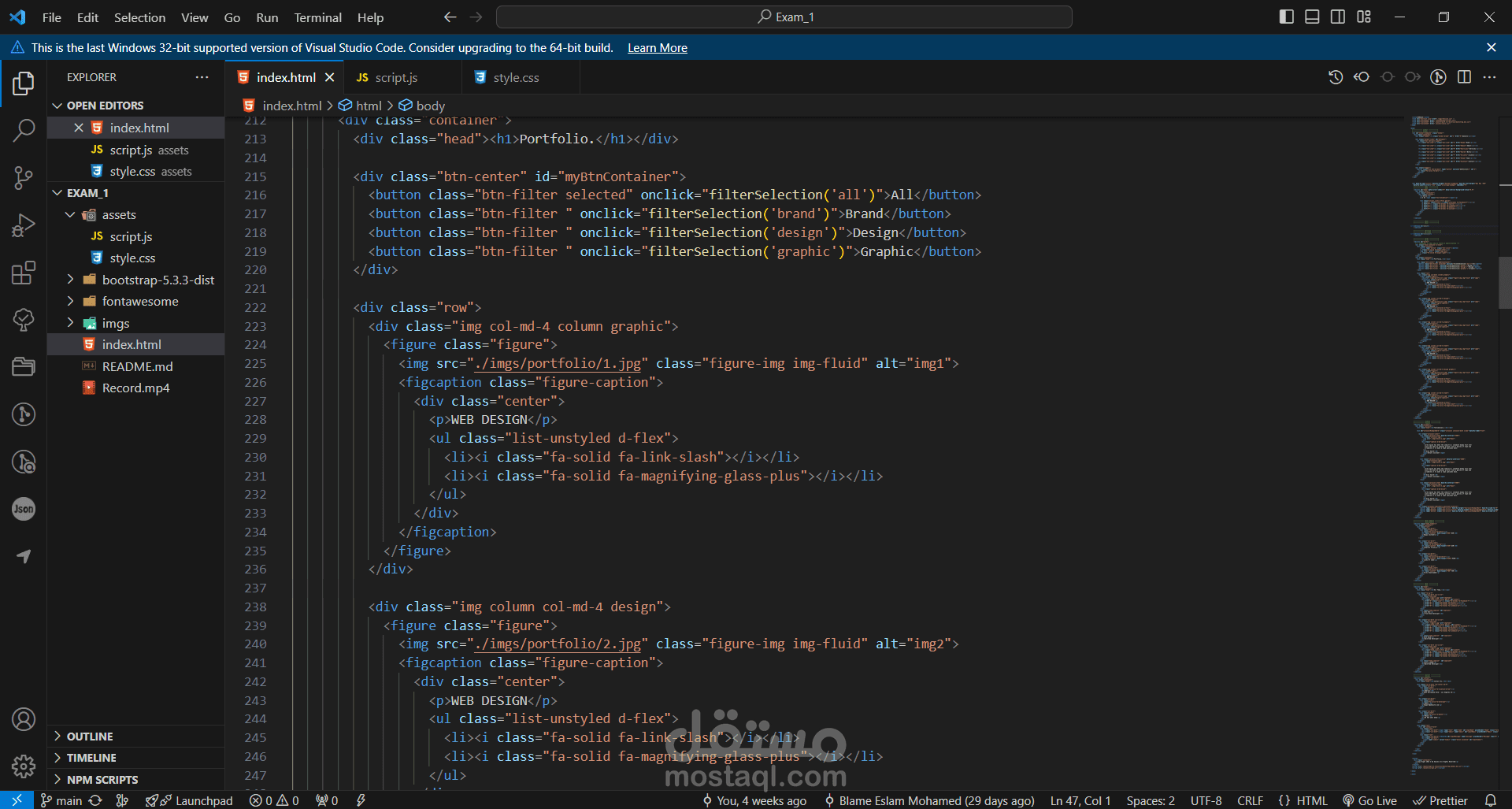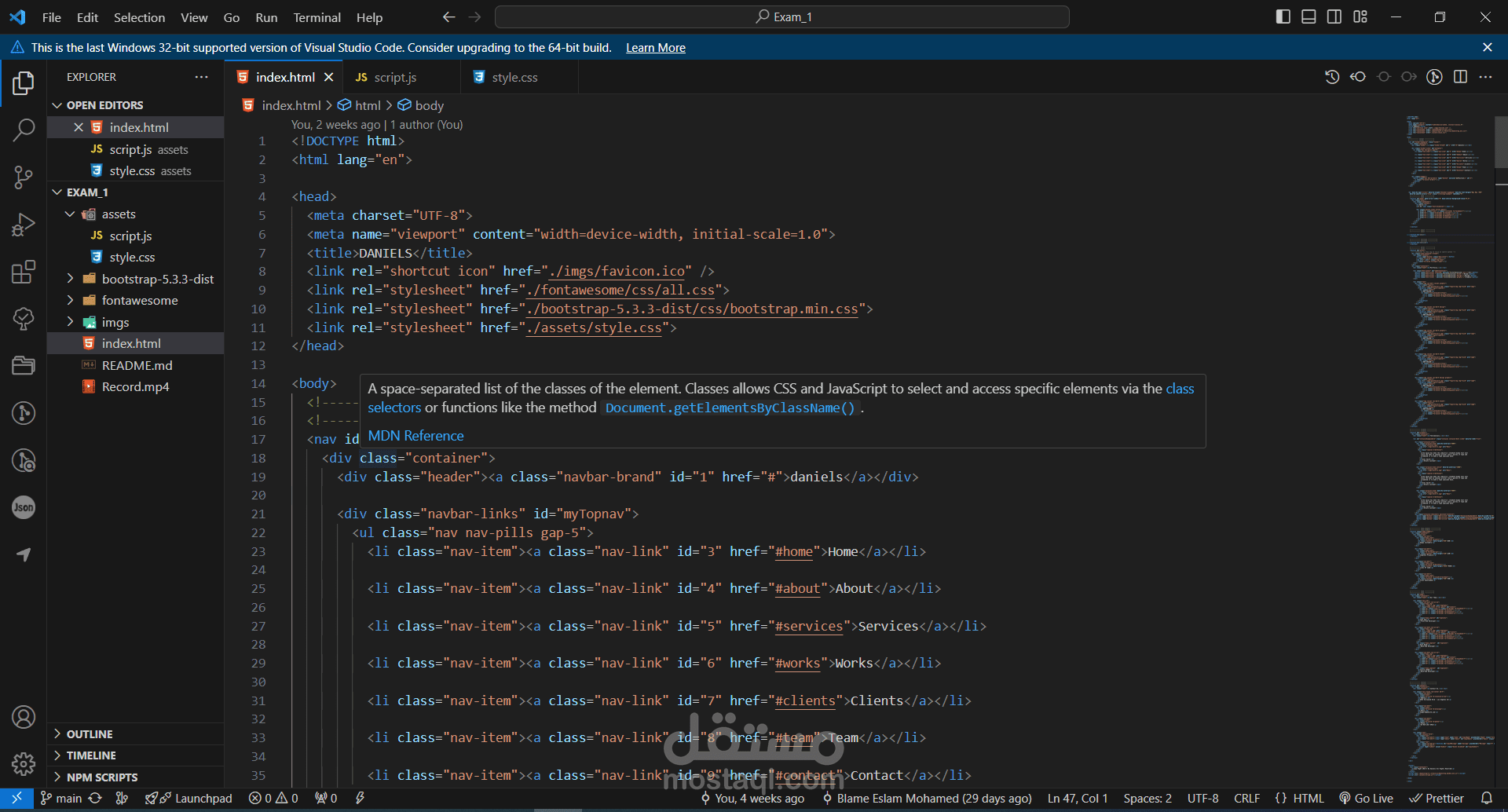 فى المشروع دا انا استخدمةHTML, CSS, JavaScript, Bootstrap