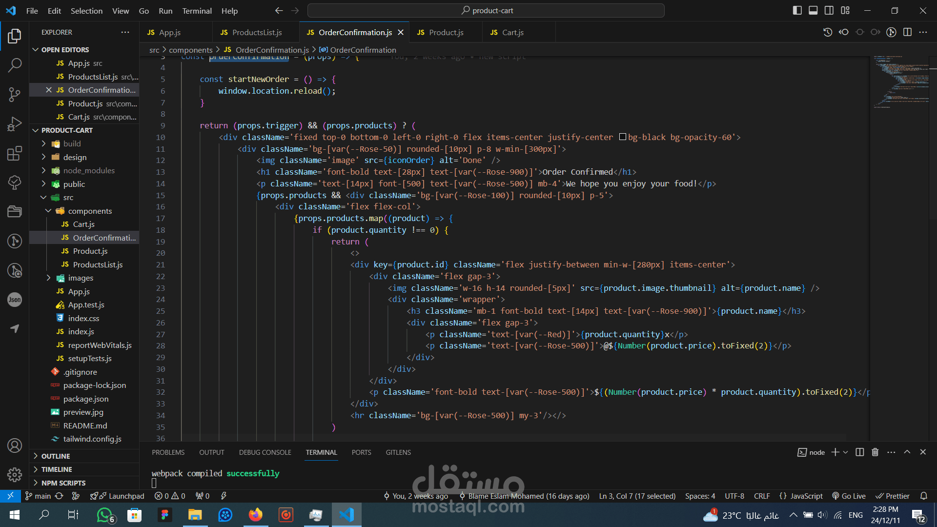 3-رؤية نافذة تأكيد الطلب عند النقر على "تأكيد الطلب"