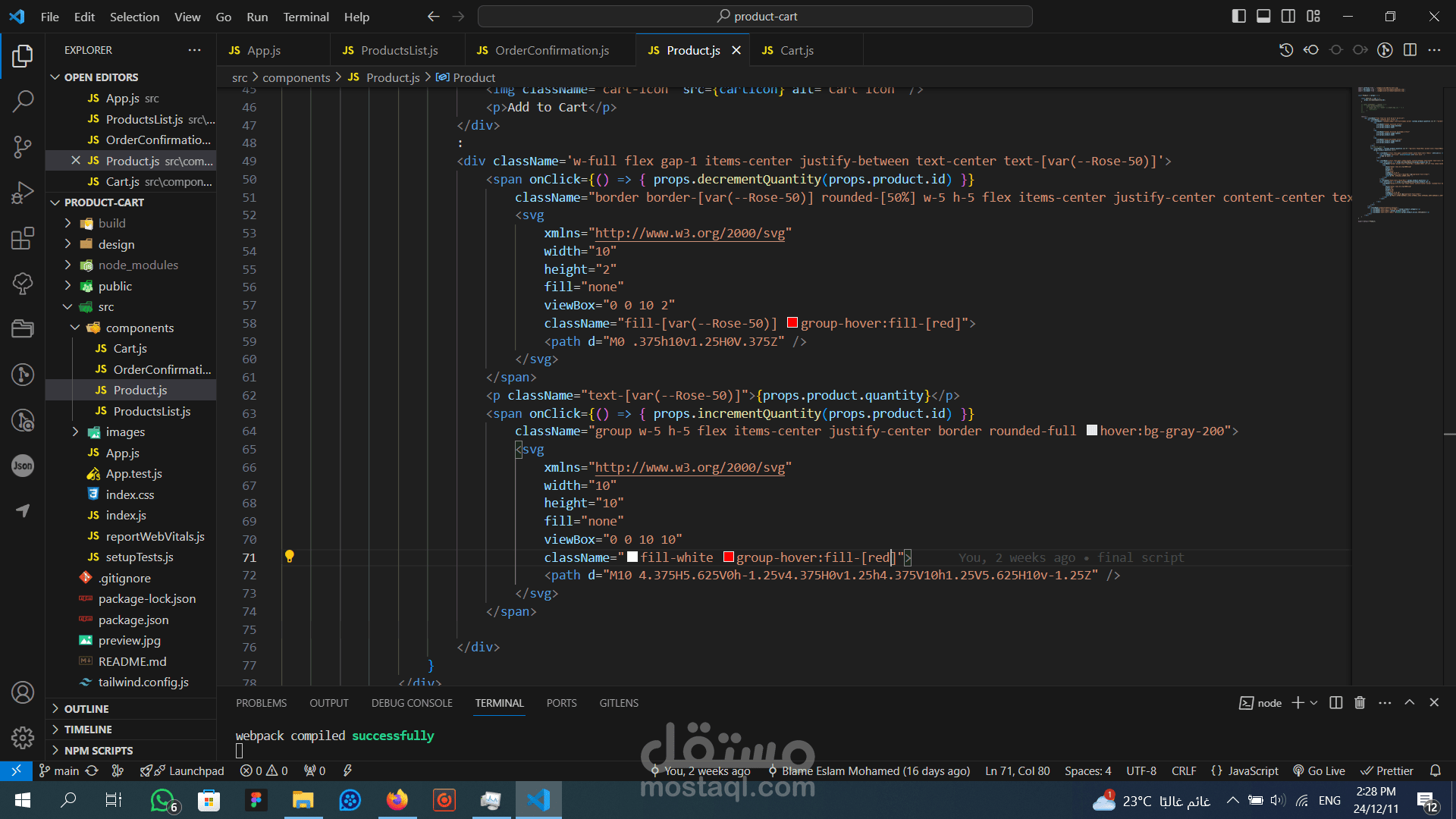 2-زيادة/تقليل عدد العناصر في عربة التسوق