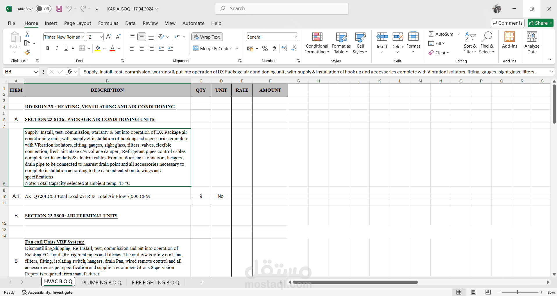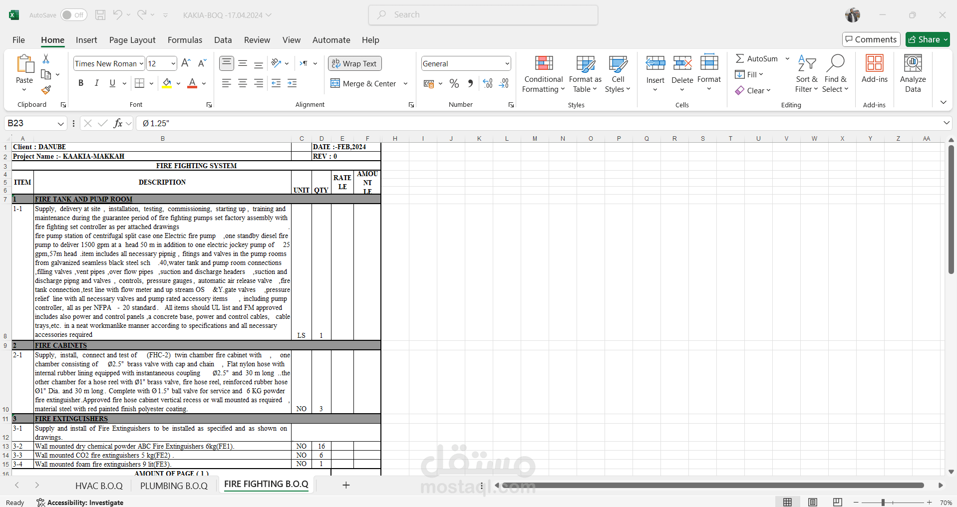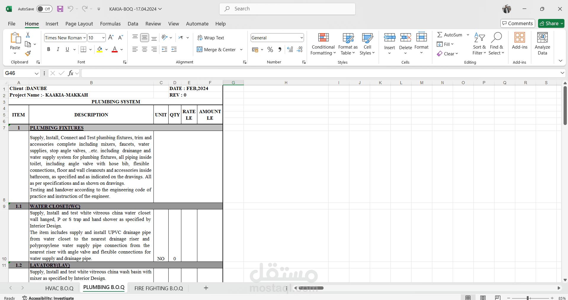 - Prepared a comprehensive B.O.Q detailing quantities and specifications for all mechanical, plumbing, and firefighting components, enabling accurate budgeting and procurement.