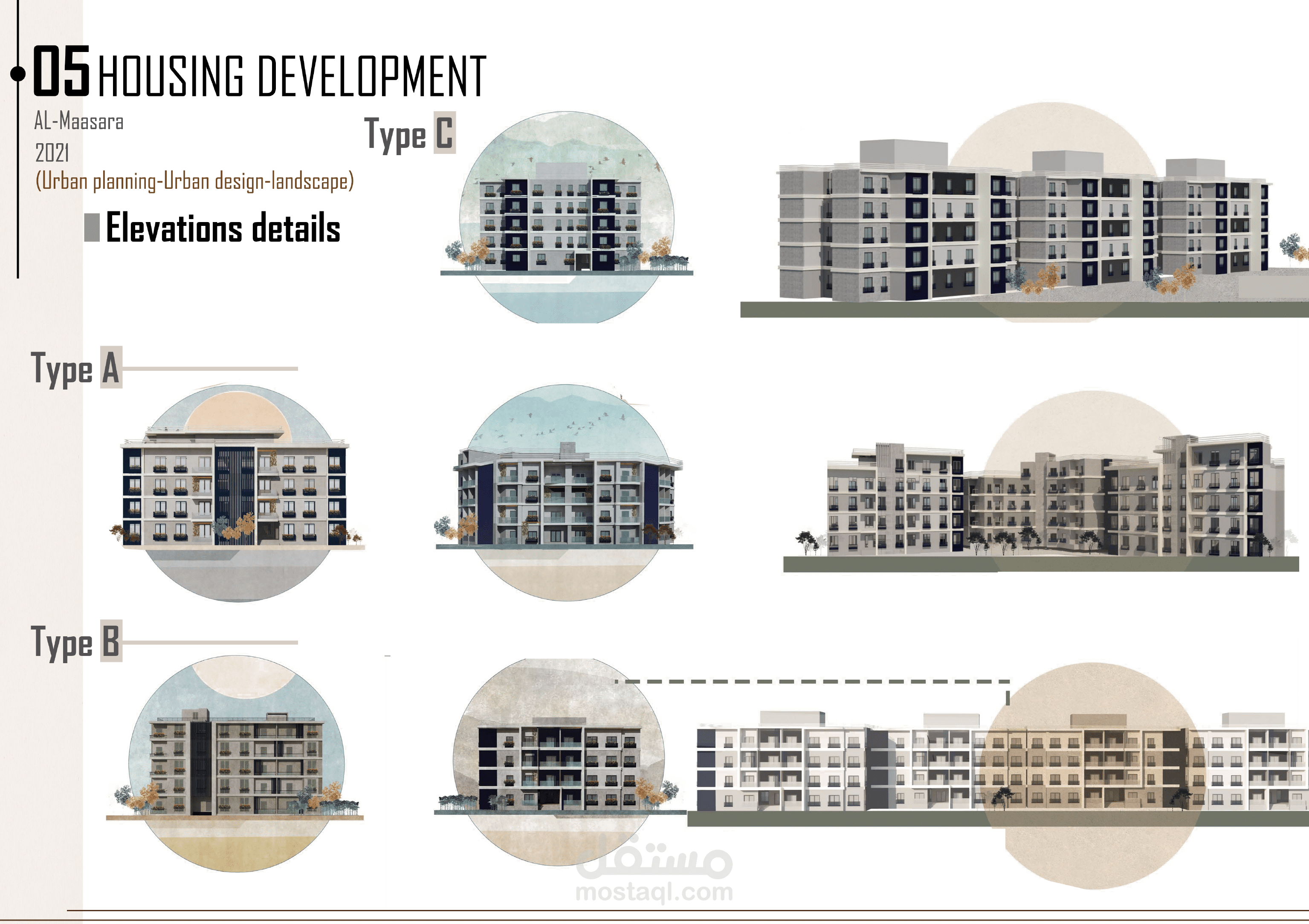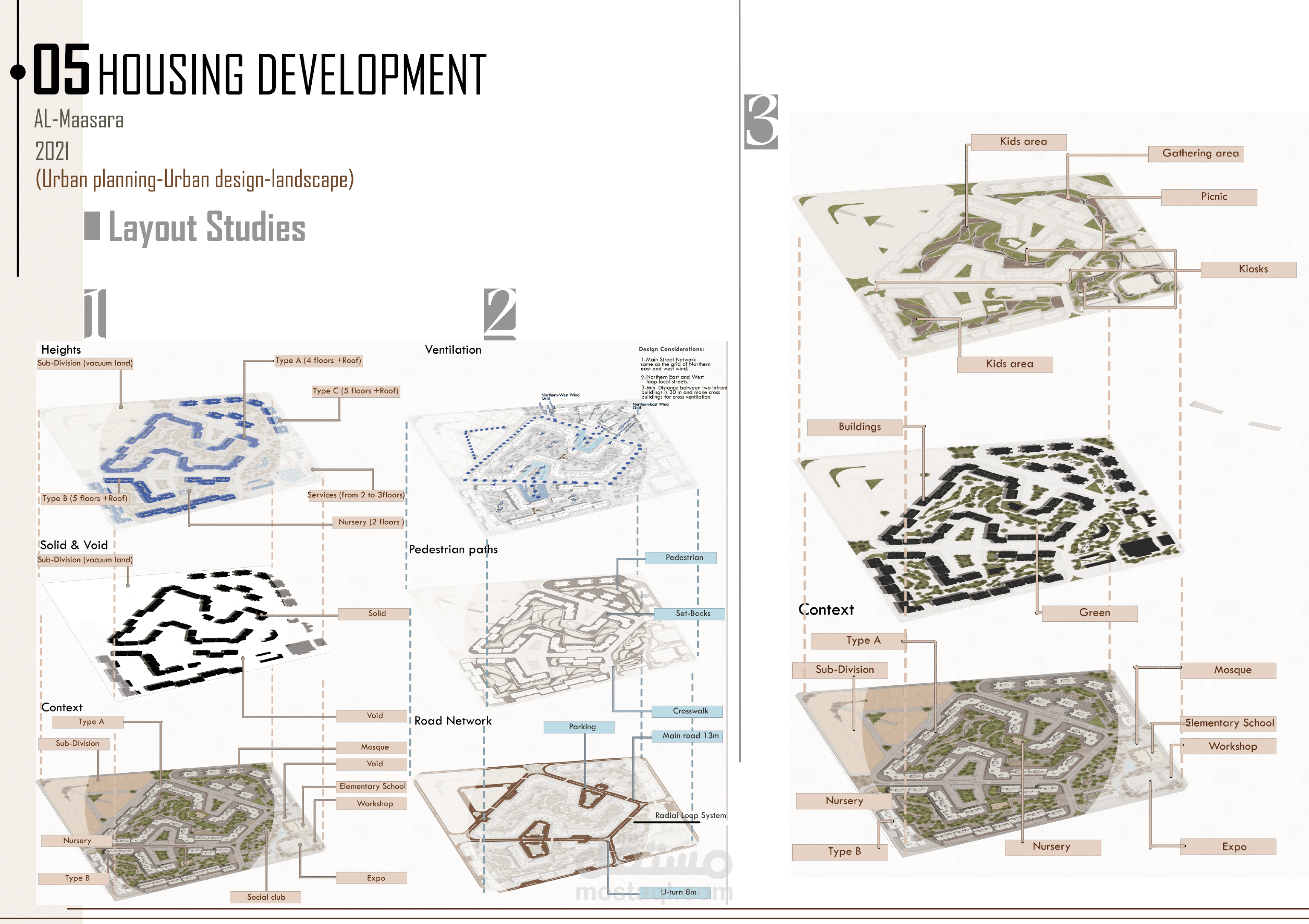 - إعداد مخططات تُبرز التوزيع الذكي للمباني لضمان توفير الراحة والخصوصية لكل وحدة سكنية.