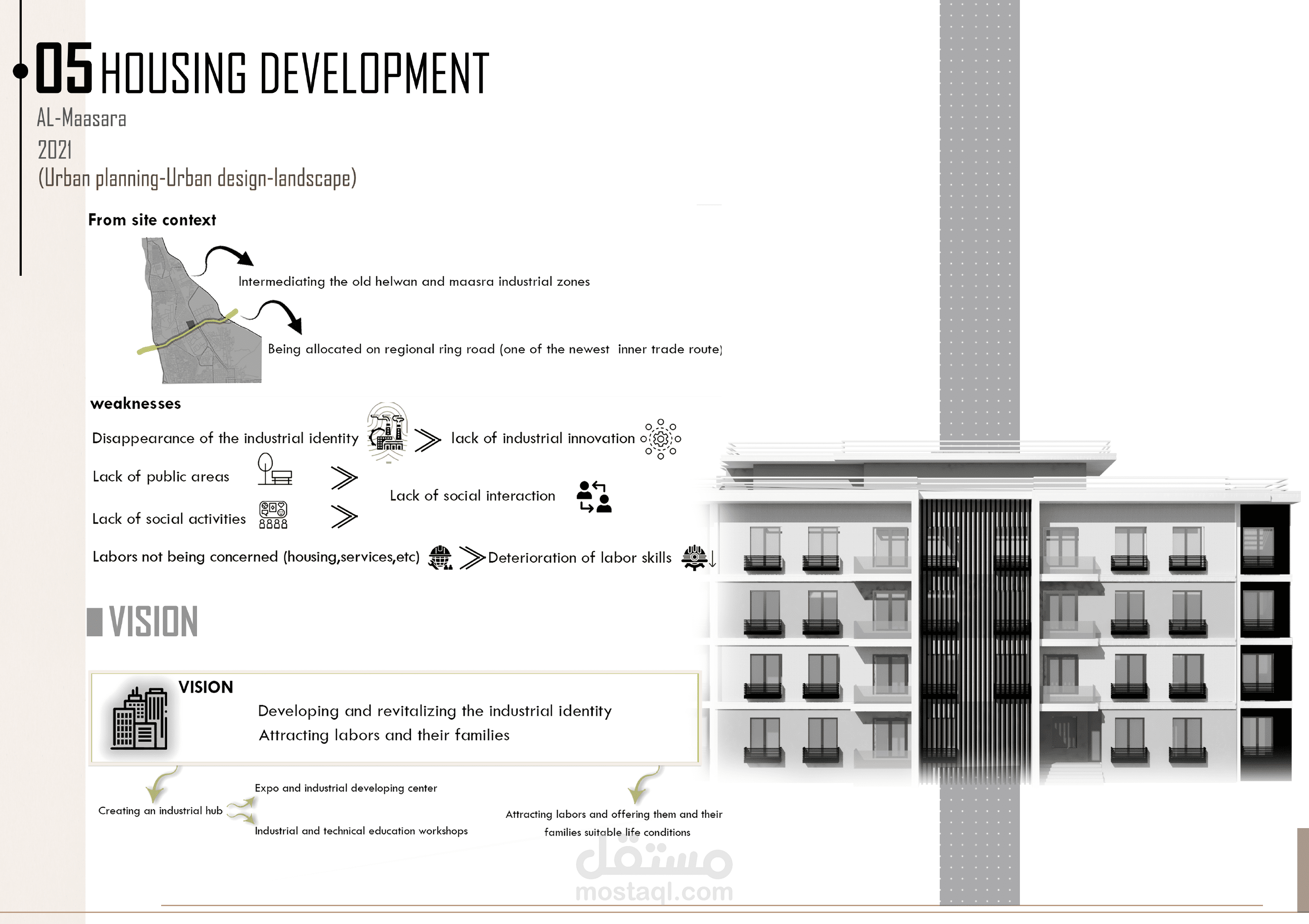 - تقديم تصور متكامل يتضمن مخططات واضحة وعروض بصرية توضح كيف يعكس المشروع تحسينات نوعية الحياة لسكان المعصرة.