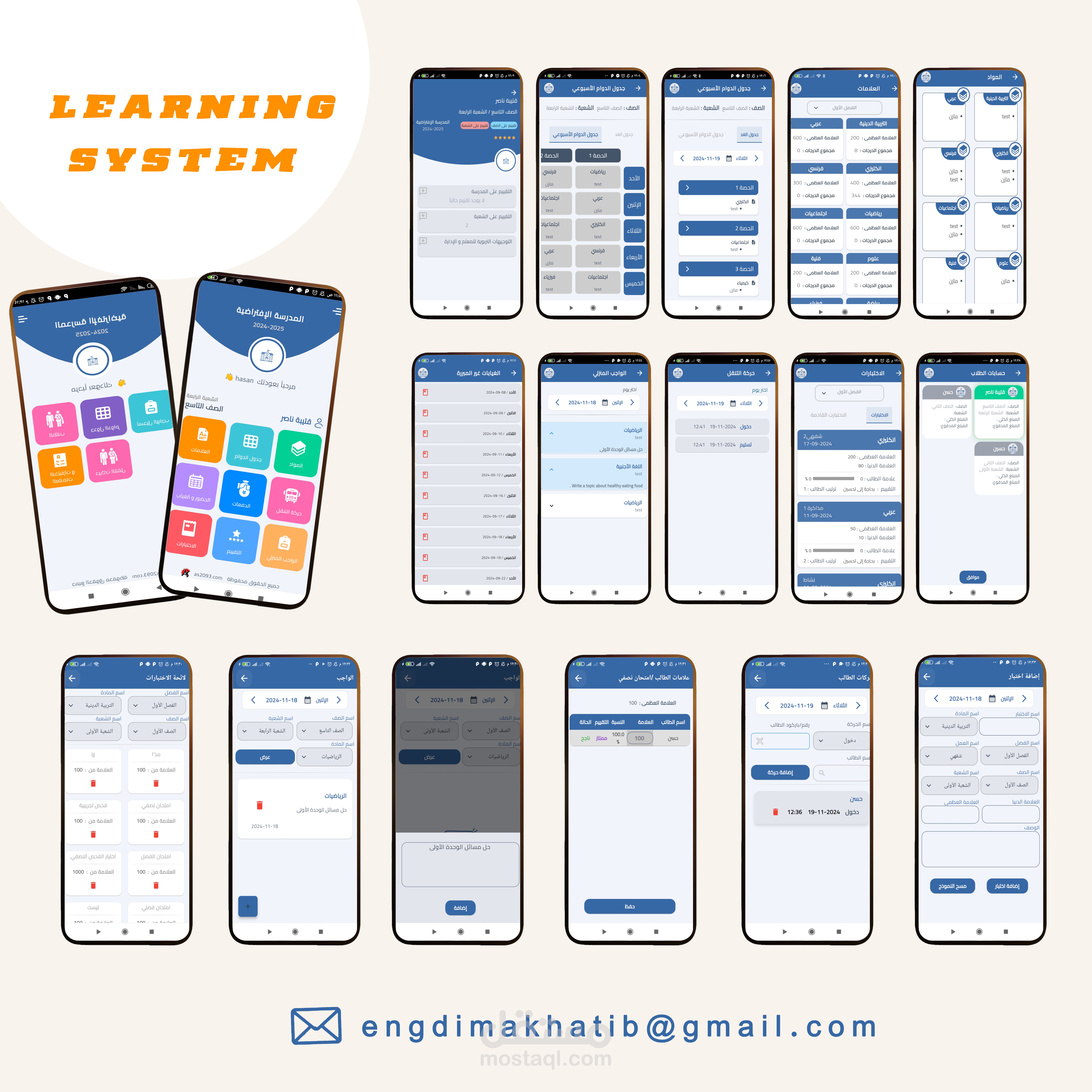 تطبيق النظام التعليمي يتكون من تطبيقين منفصلين، أحدهما مخصص للموظفين (المعلمين) والآخر مخصص لأولياء أمور الطلاب، بهدف تسهيل التواصل والمتابعة بين المدرسة والأسرة. يشتمل كل تطبيق على ميزات متعددة كما يلي: