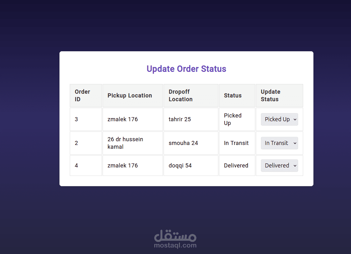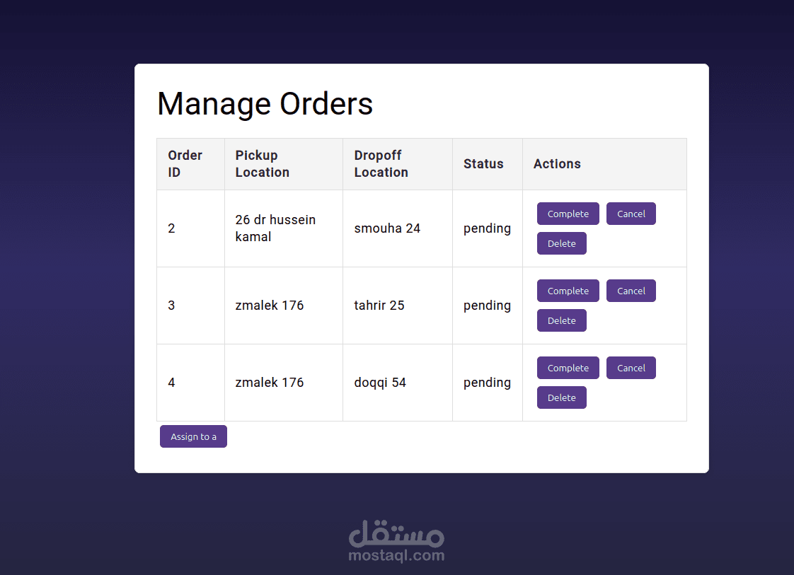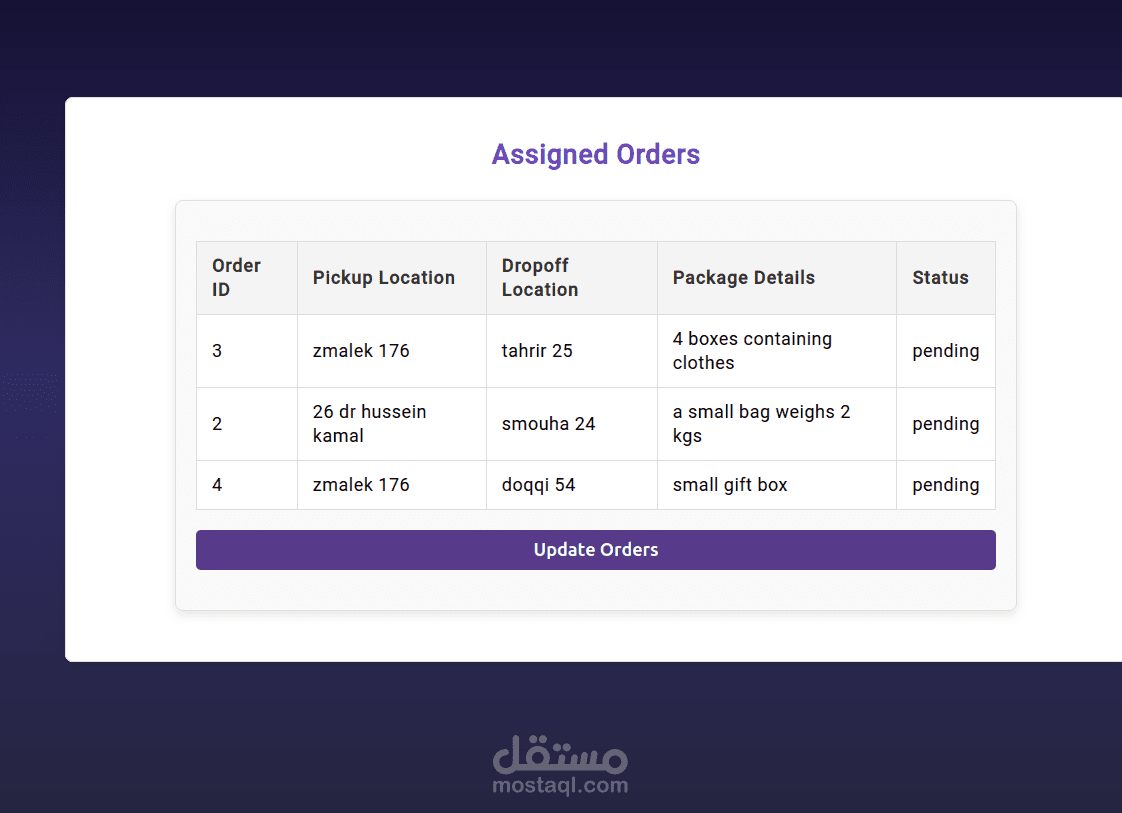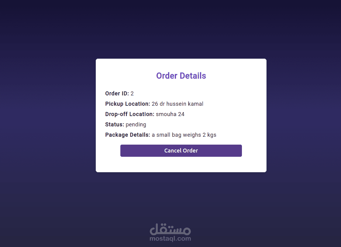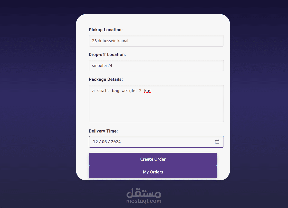 تطبيق كامل يعتمد على Angular، Node.js، وPostgreSQL لتسهيل عملية توصيل المنتجات لأصحاب الأعمال الصغيرة الذين يبيعون على منصات مثل فيسبوك وإنستغرام. يوفر التطبيق تسجيل دخول آمن، تتبع الشحنات، وإدارة شركات التوصيل، بالإضافة إلى لوحة تحكم بواجهة بسيطة لإدارة الشحنات بكفاءة. مصمم ليكون سهل الاستخدام ومتاح على جميع الأجهزة.