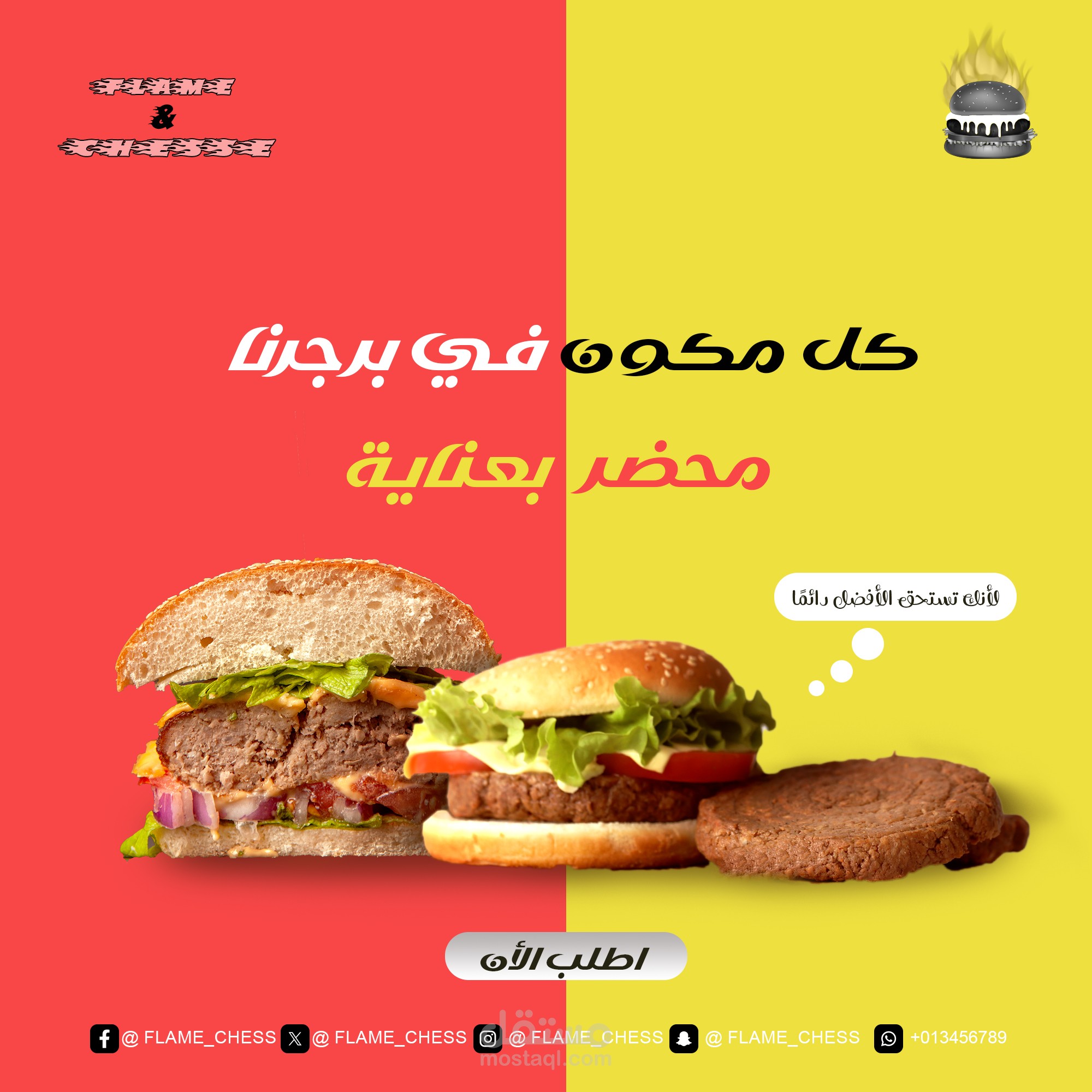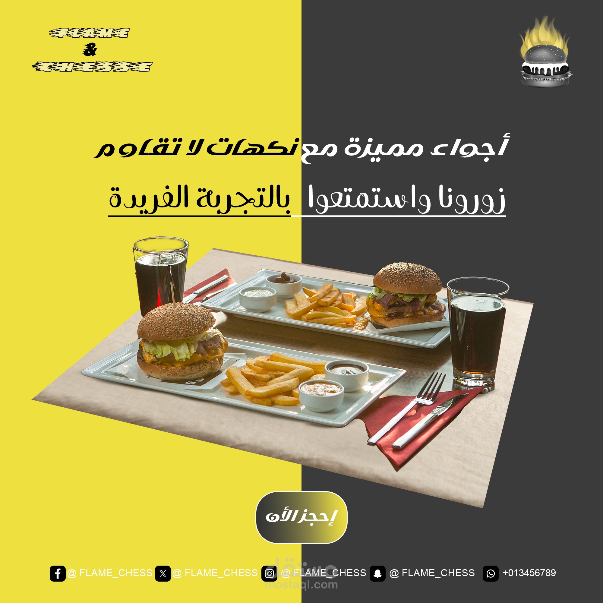 النكهة المميزة: يعتمد "فليم إن تشيز" على استخدام النكهات المدخنة والجبن الذائب لتحضير برجر فريد من نوعه.