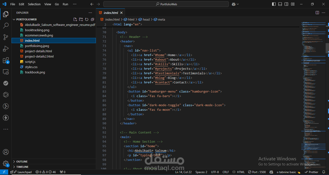 The Portfolio Development project for Abdulkadir Saloum involves creating a comprehensive and visually appealing personal portfolio website. This project showcases Abdulkadir's web development skills, projects, and experiences. The portfolio is designed to be user-friendly, responsive, and informative, providing visitors with an overview of Abdulkadir's capabilities and achievements. The project integrates various modern technologies to ensure a seamless and engaging user experience.