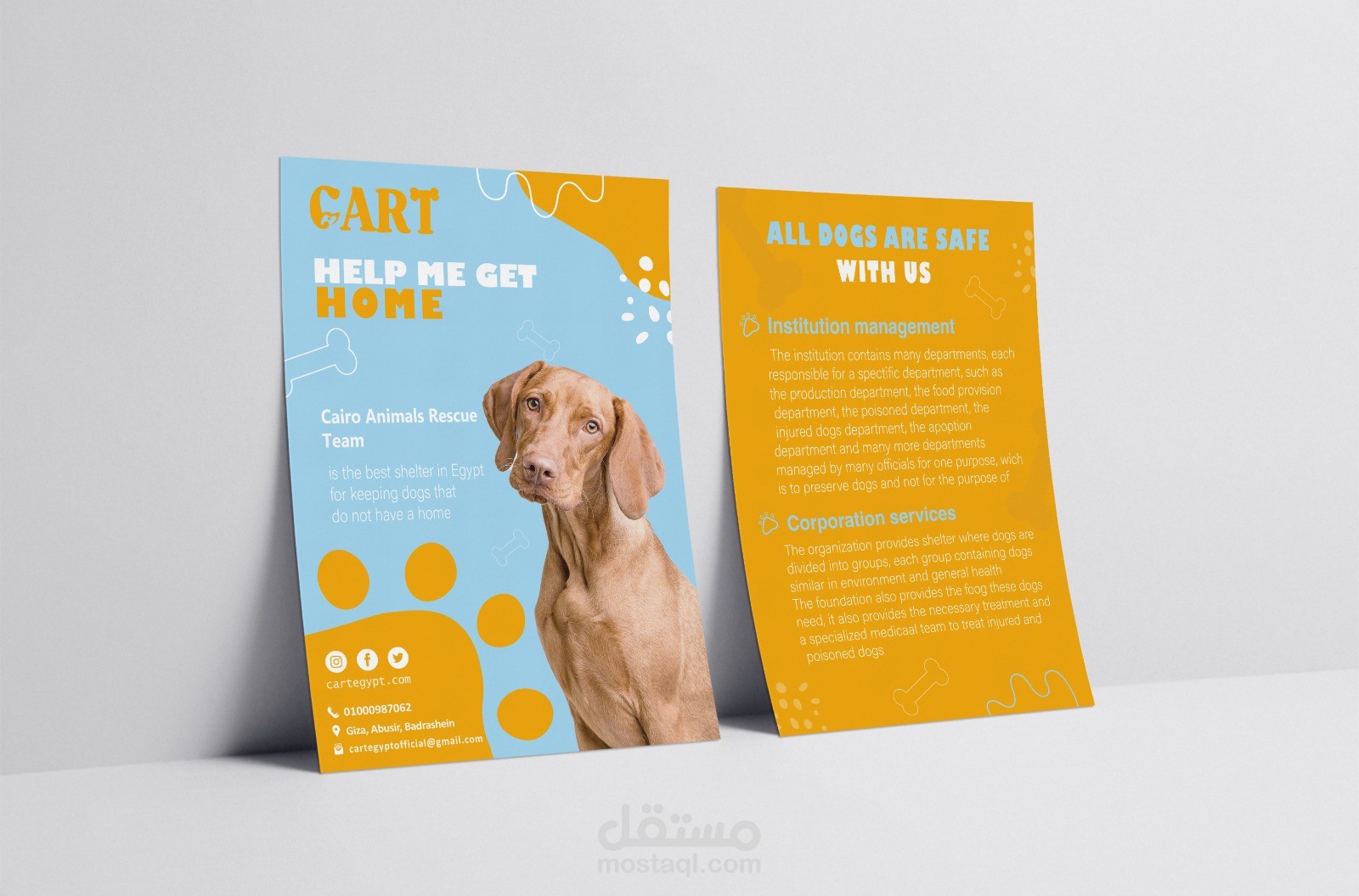وتم تصميم هوية كاملة لهذا الشلتر من لوجو وكارت وفلاير الخ