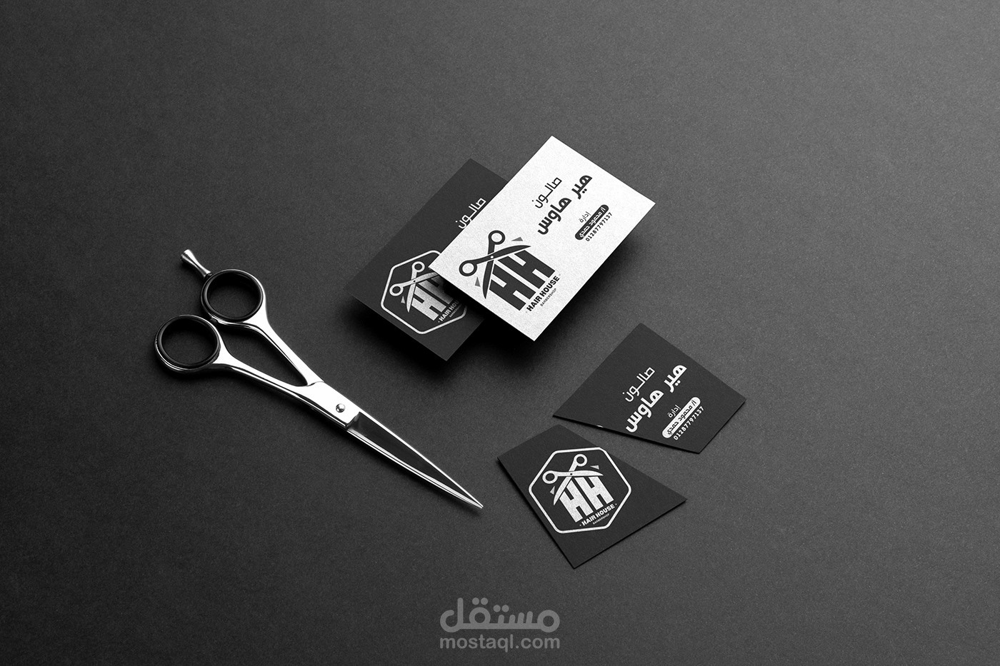 لذا قررت تصميم شعار بسيط ومباشر عن طريق قطع حواف حرفي "H" في "Hair House " بالمقص.