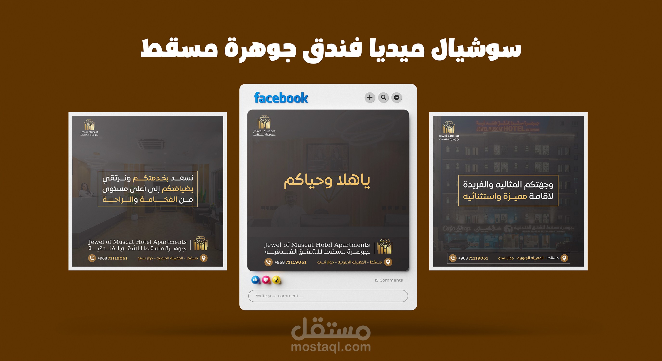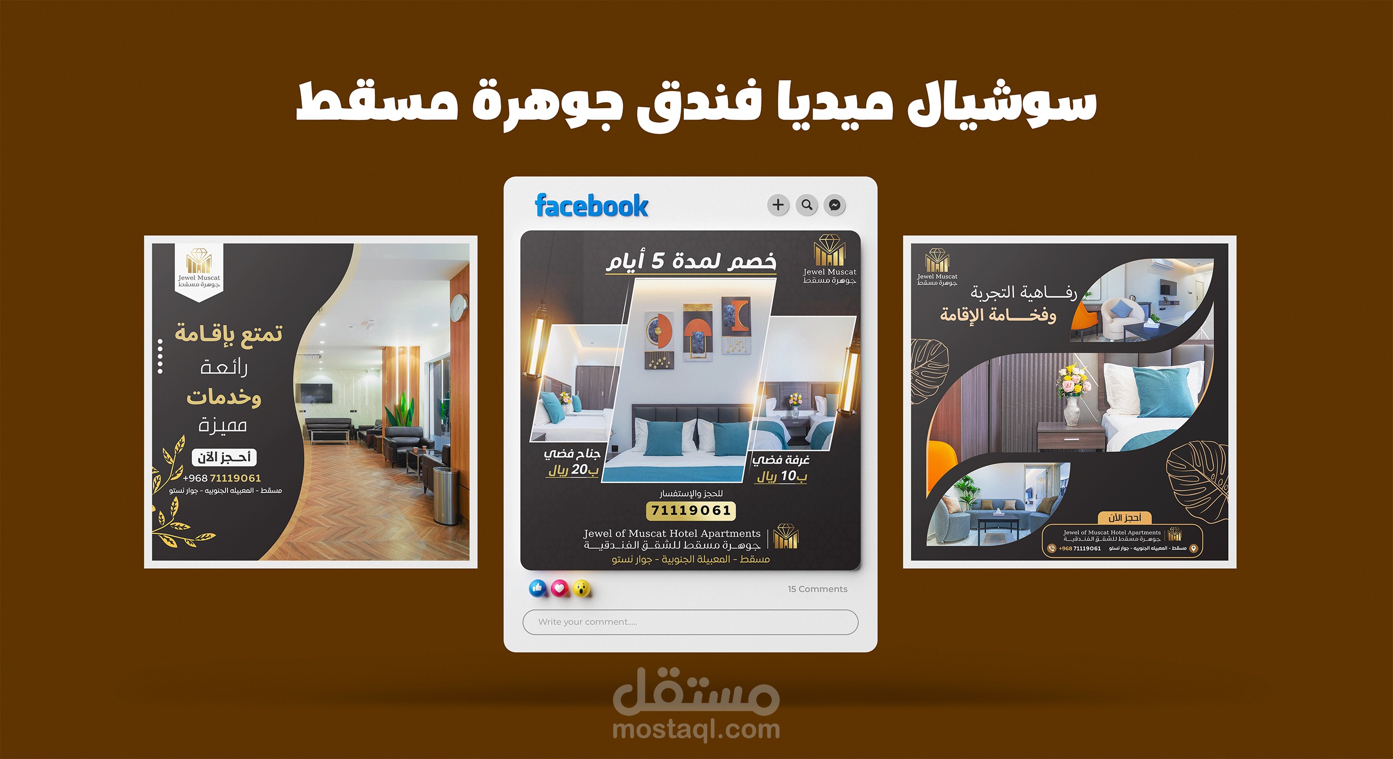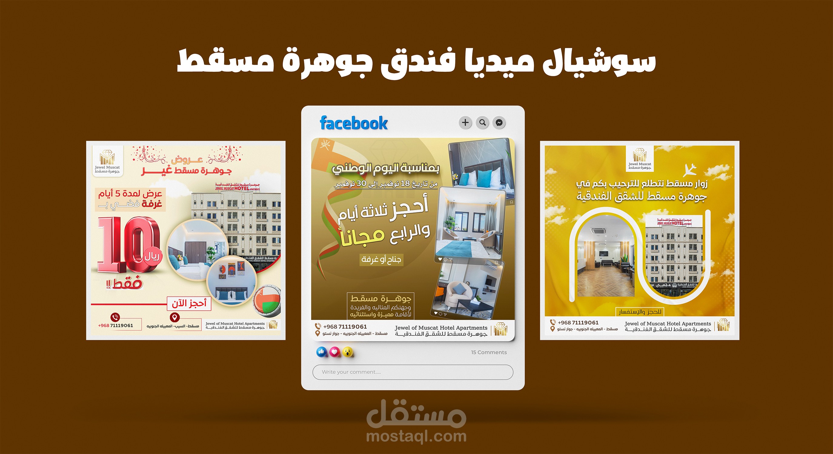 بعض تصاميم السوشيال ميديا قمت بتصميمها لحساب فندق جوهرة مسقط للشقق الفندقية (سلطنة عمان - مسقط)