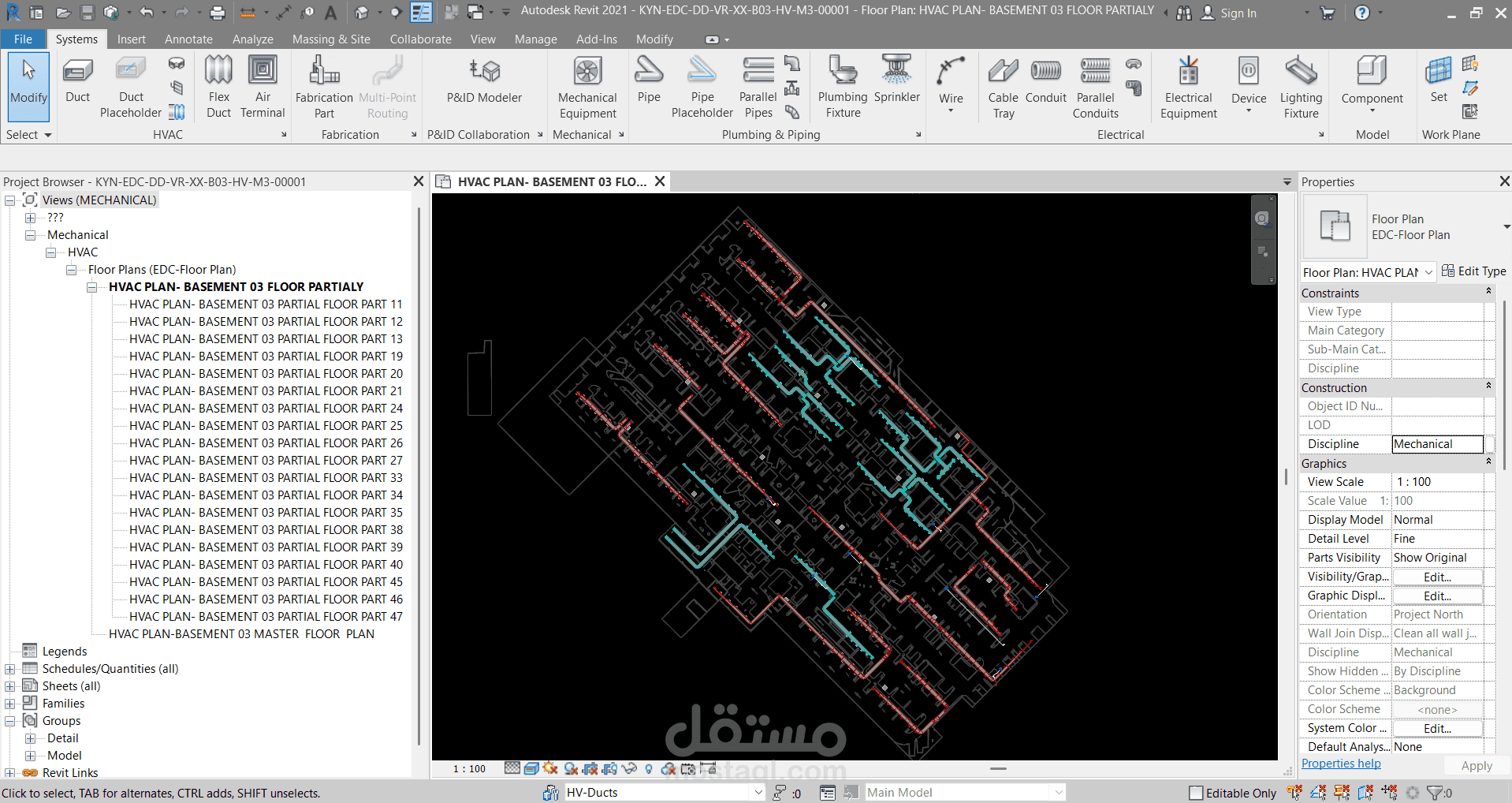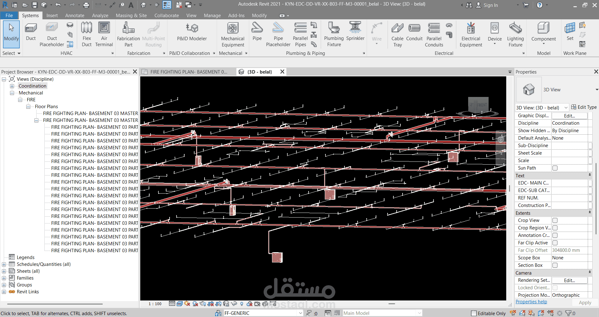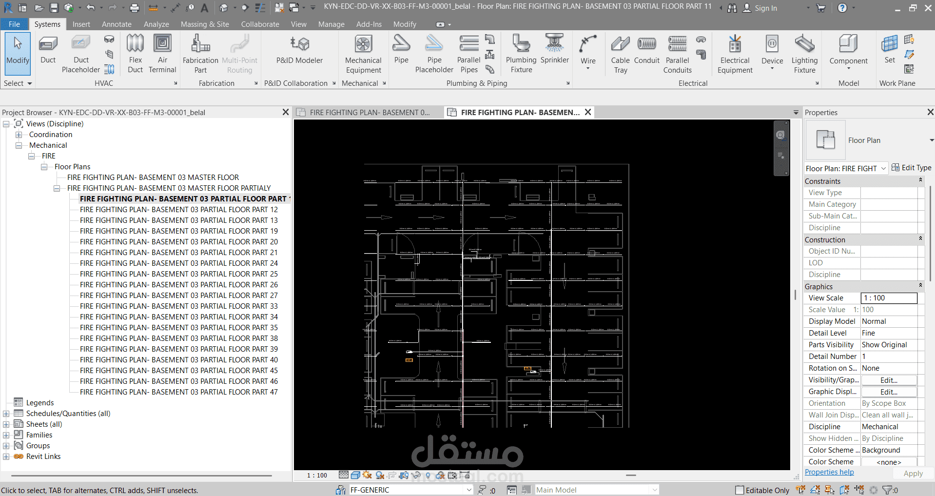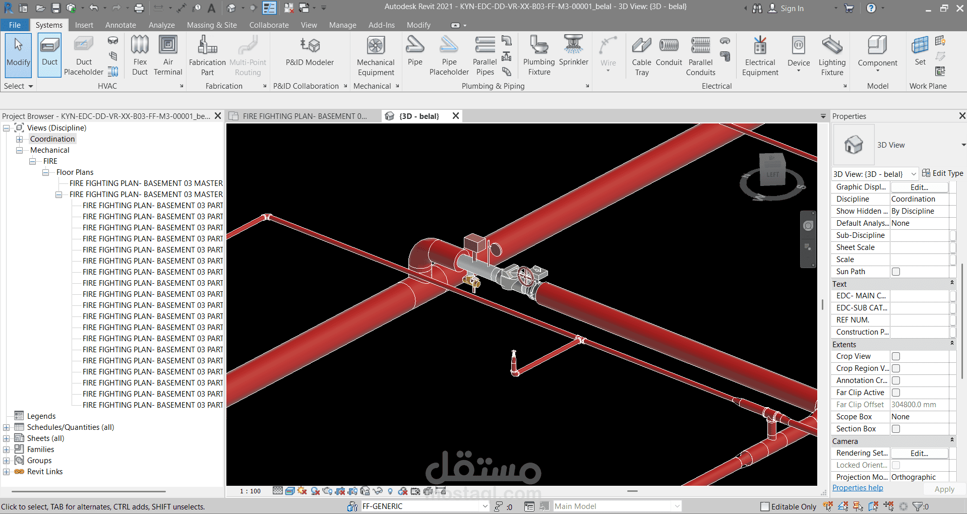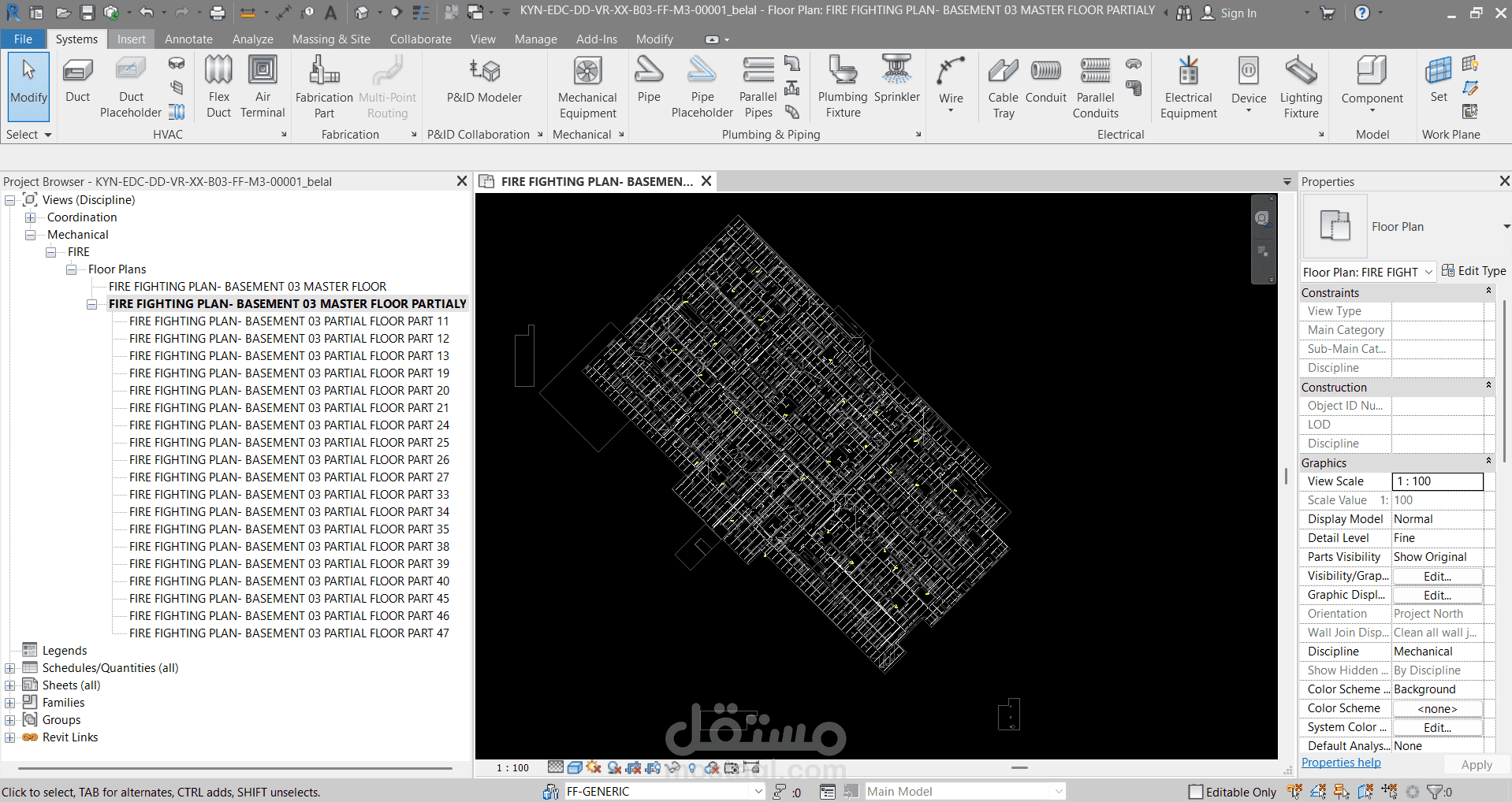 Job Description: Design and Coordination of HVAC, Fire Fighting, and Plumbing Systems for a Shared Basement Using Revit