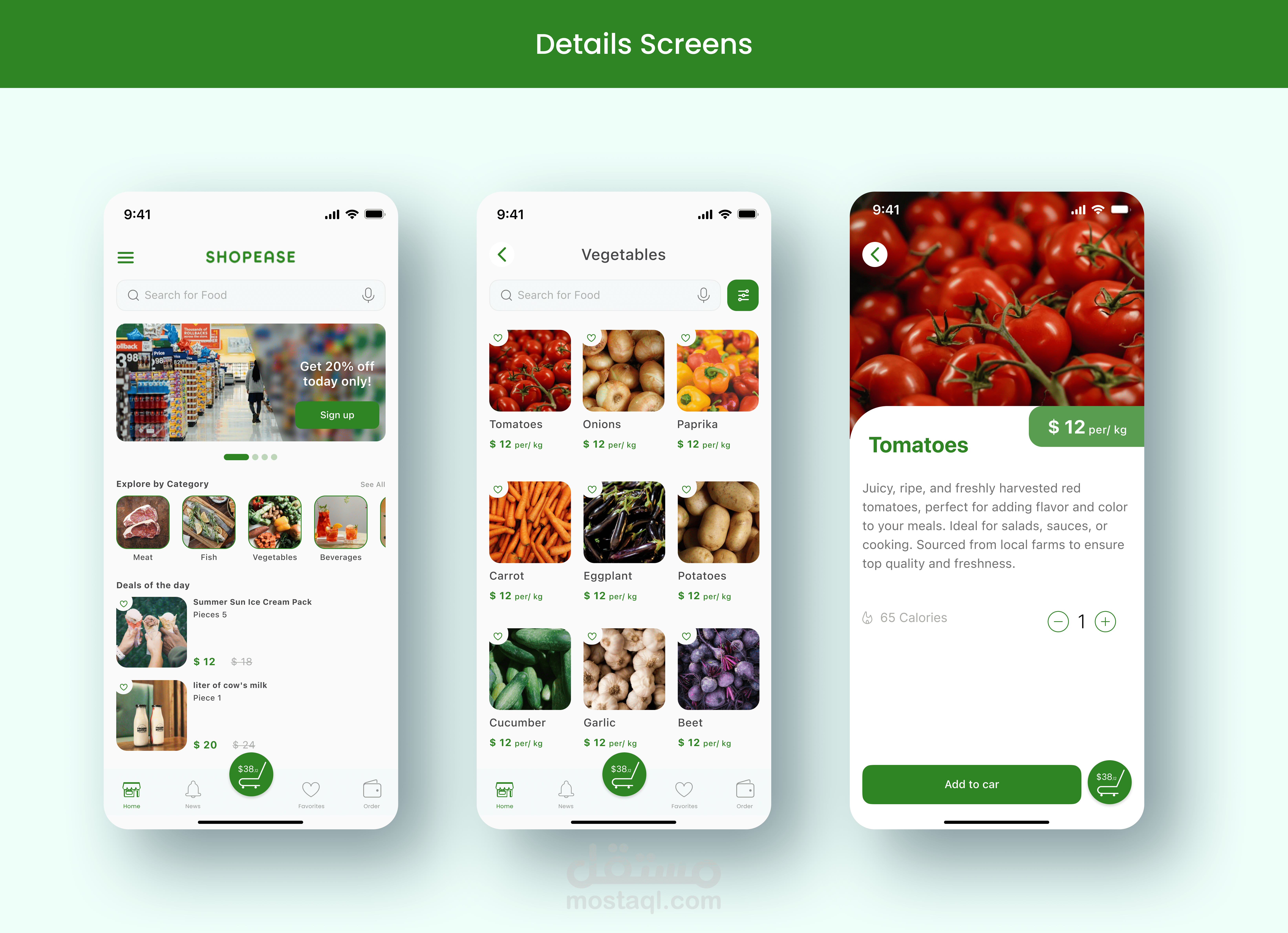 الهدف من هذا المشروع هو تصميم واجهات مستخدم لتطبيق سوبر ماركت مع التركيز على تحسين تجربة المستخدم (UX) وتوفير رحلة تسوق سلسة، ودمج التنقل البديهي والتصميم المستجيب والنماذج الأولية التفاعلية التي تم تطويرها في Figma.