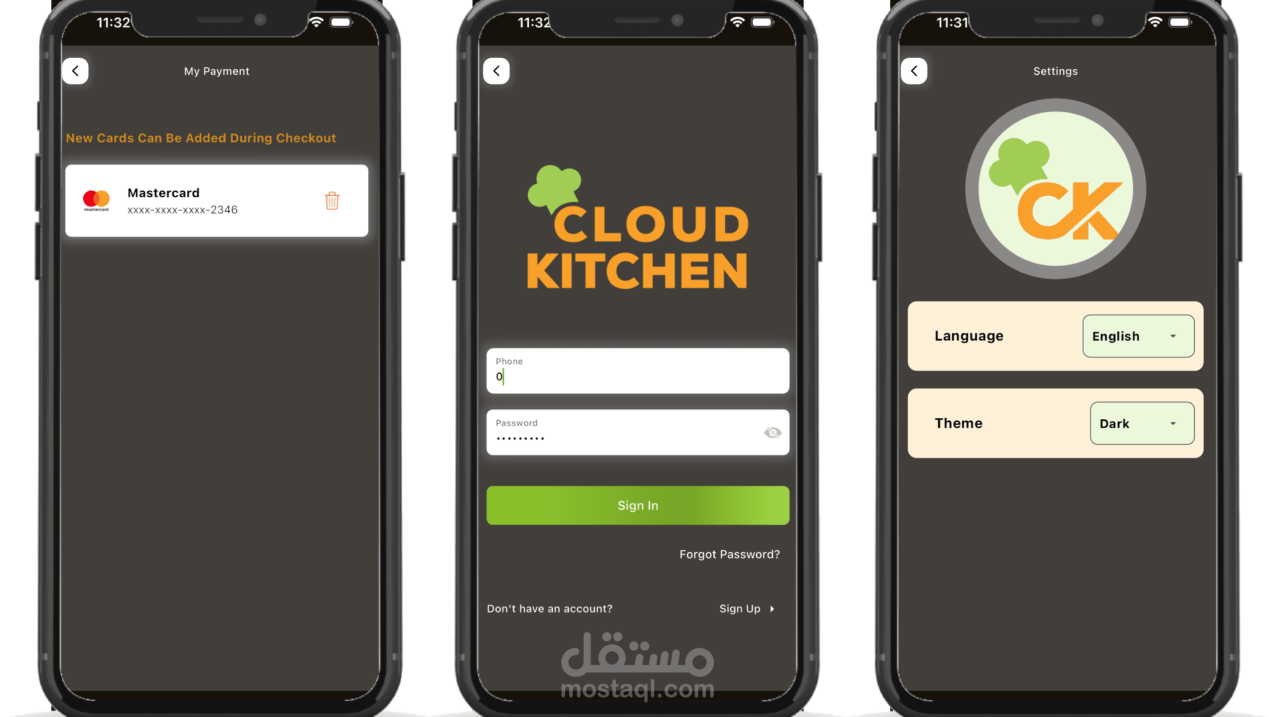 تطبيق مستخدم ومندوب توصيل لمطعم Cloud Kitchen