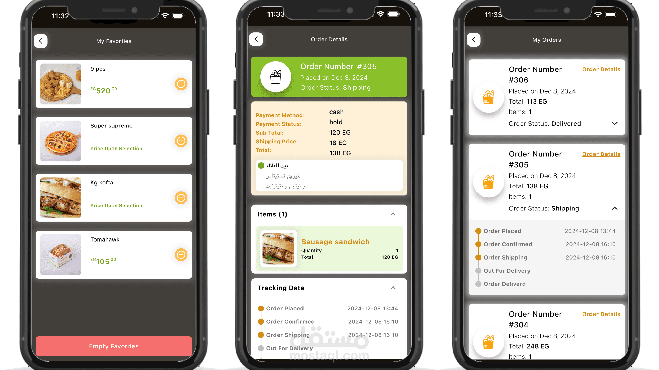 يستطيع المستخدم اكتشاف الوجبات والاختيار منها واضافتها للسلة حتى بدون تسجيل عضوية، ويتم حفظ السلة. يتم التسجيل برقم التليفون وارسال OTP للتحقق. يستطيع المتسخدم ان يقوم بانشاء طلبية سواء للتوصيل لعنوان محدد يقوم بوصفه وتحديد موقعه على الخريطة، او استلامه من الفرع. يمكنه الدفع نقدا او عن طريق بوابة دفع الكترونية٫