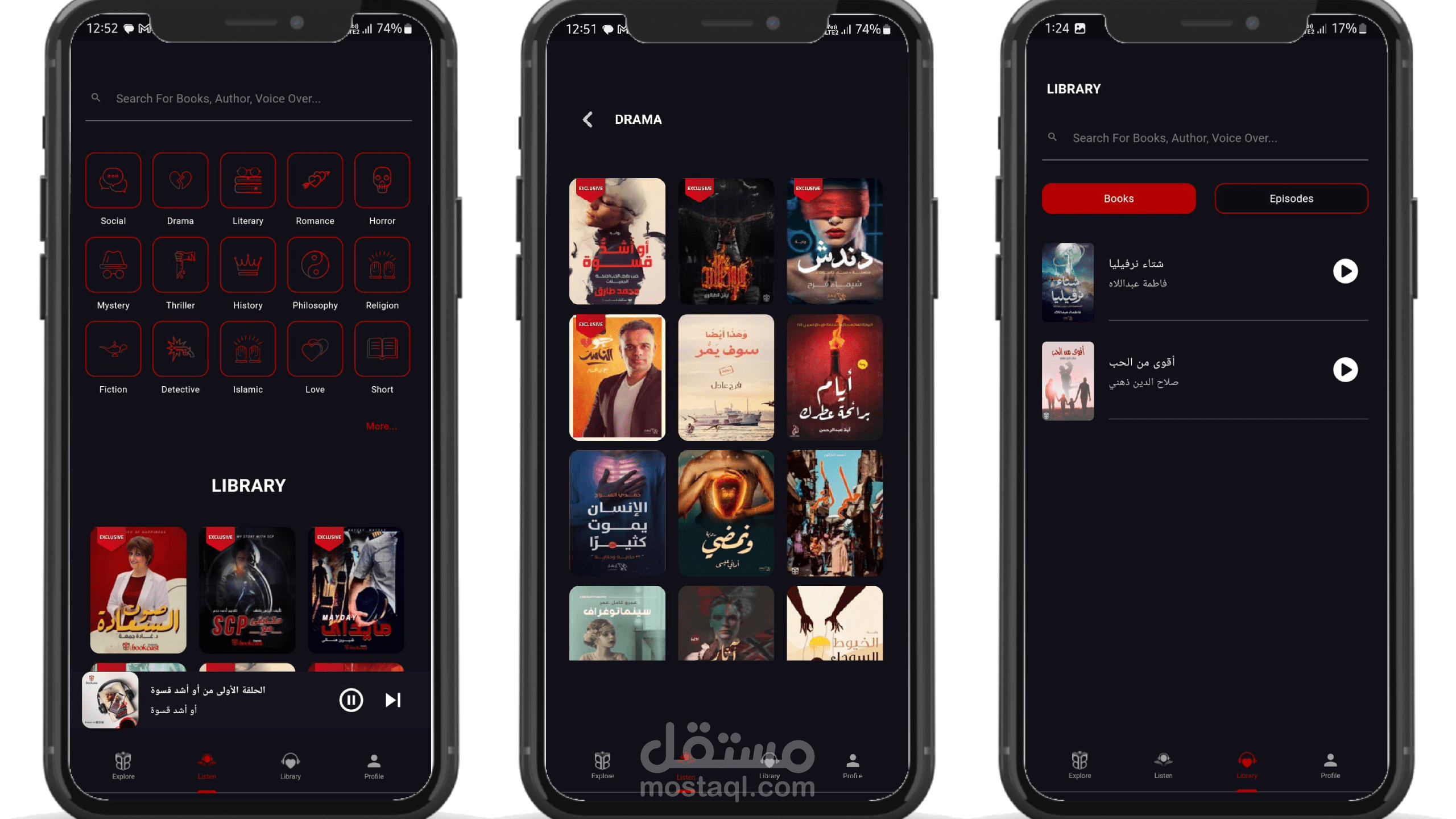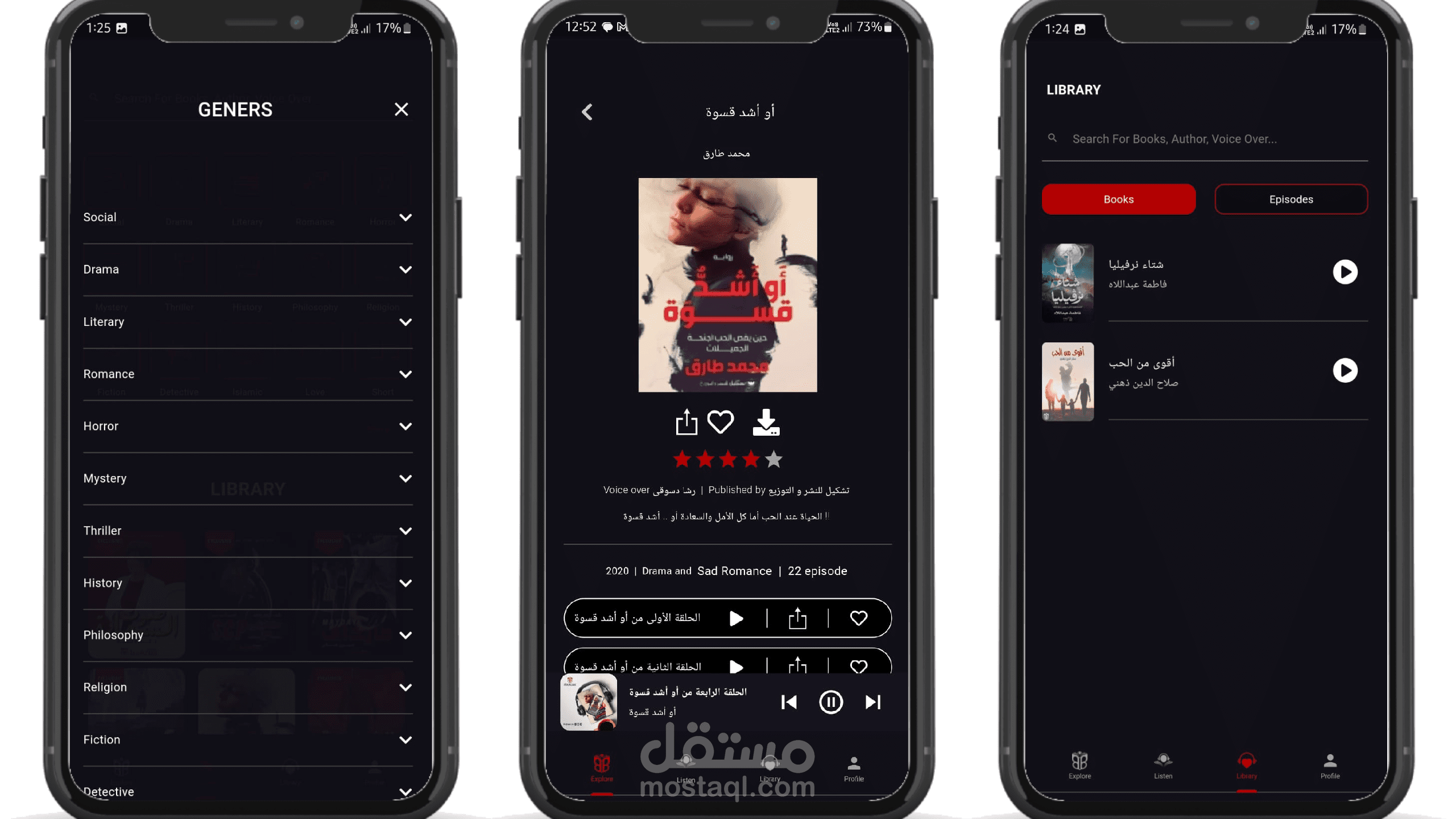 يمكنك سماع الكتب التي تريدها على اجزاء، كل جزء حوالي ٥ دقائق. يمكنك تحميل الكتب والسماع لها اوفلاين.يمكنك اختيار نوعك المفضل من الكتب وفلترة الكتب حسب هذا النوع.