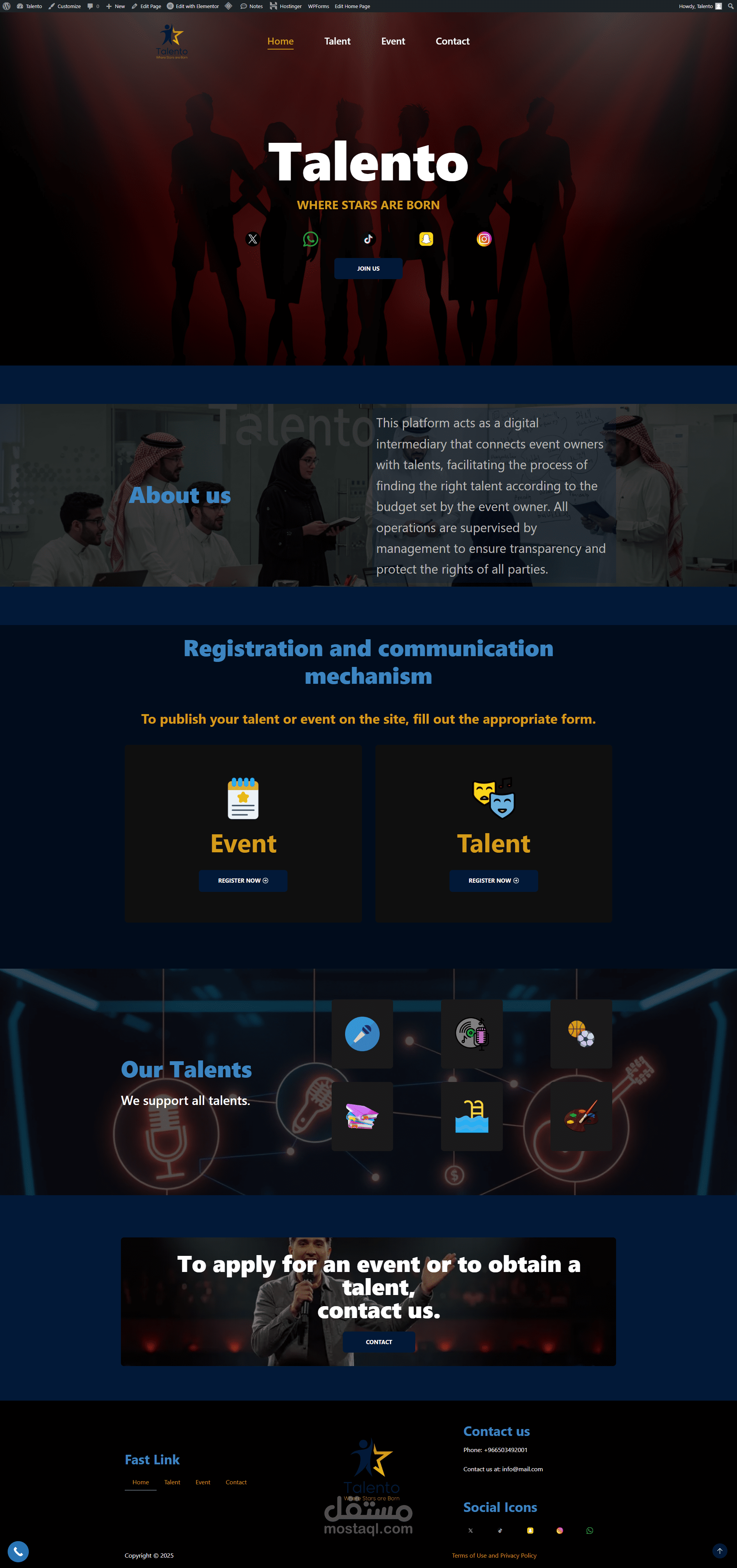 -صفحة للتواصل بين اصحاب المنصه واصحاب الموهبة والفاعلية