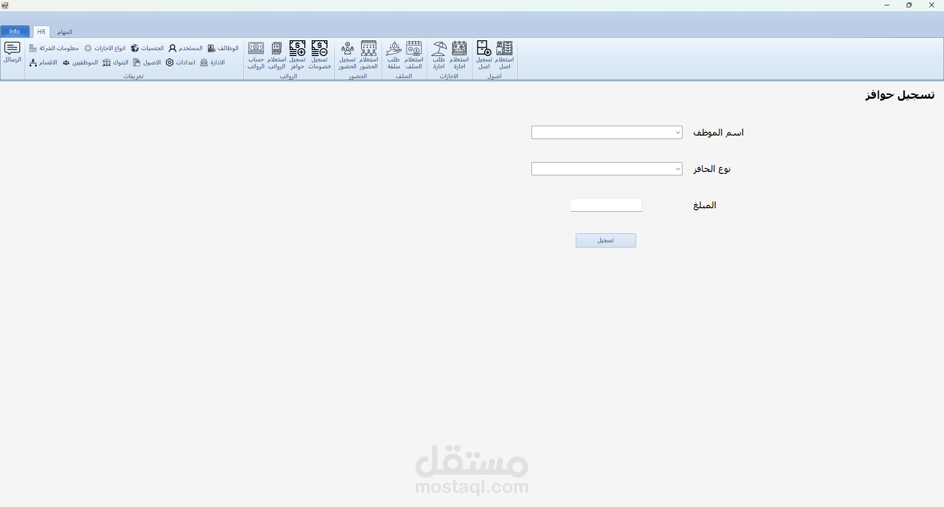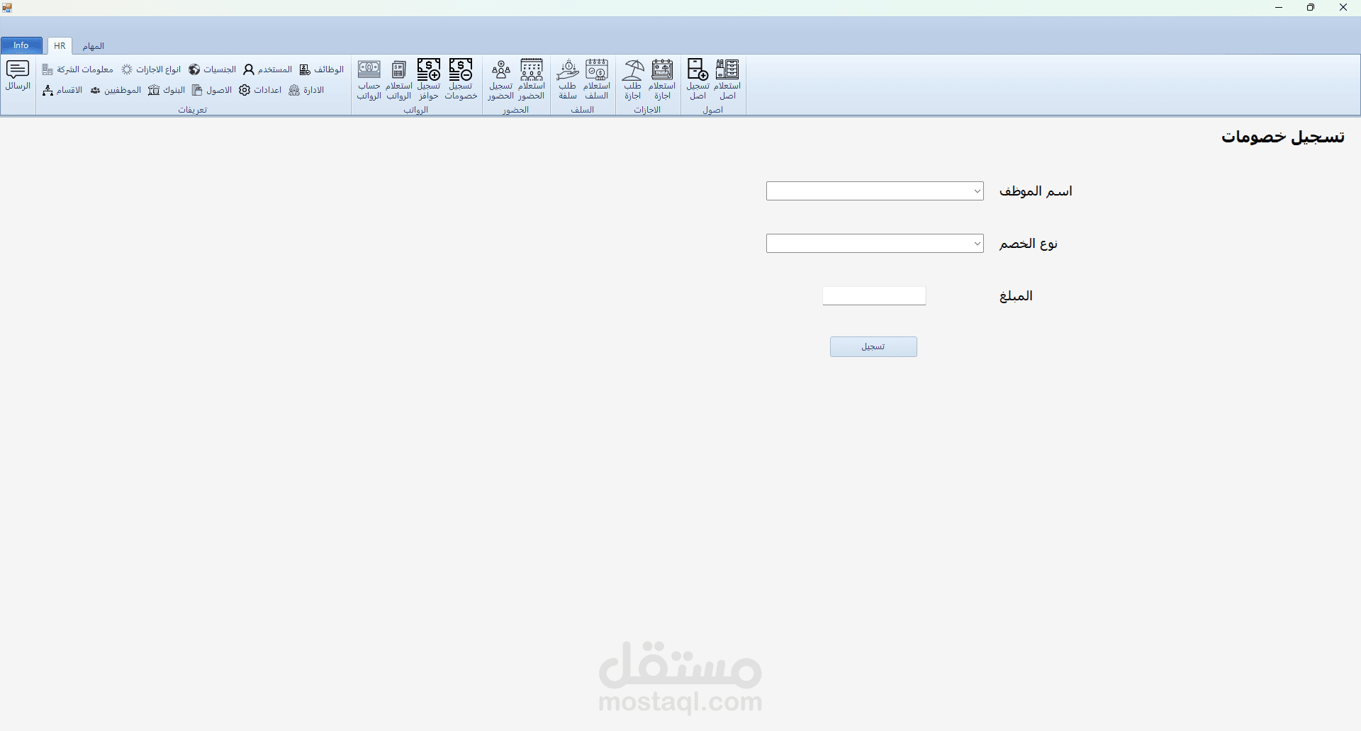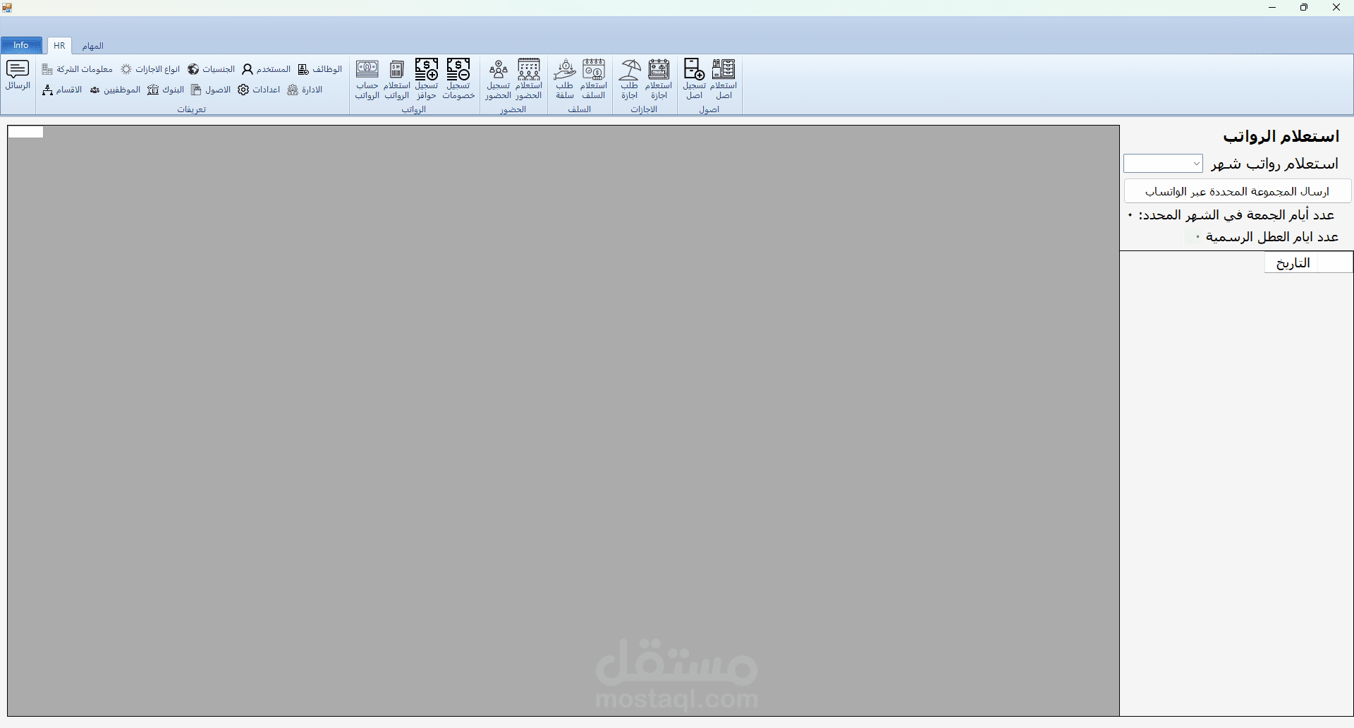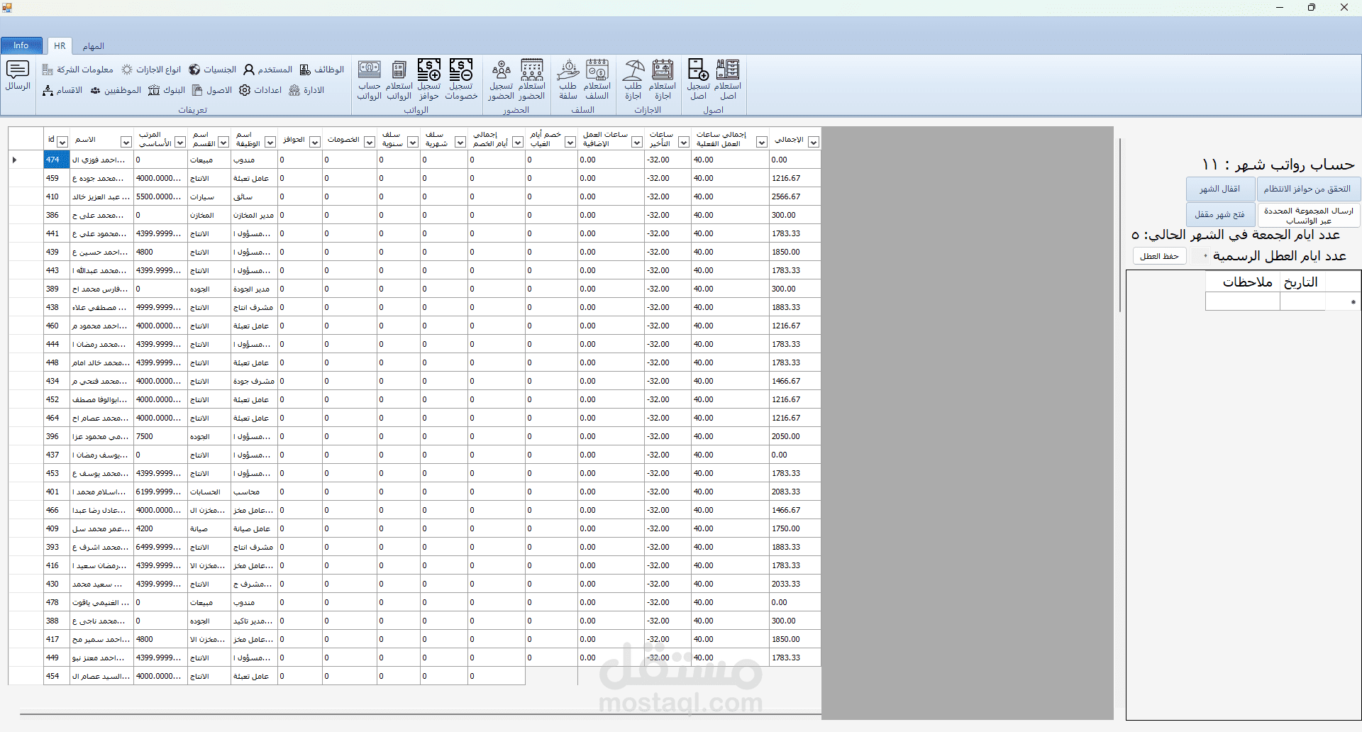 برنامج HR هو برنامج تم تطويره بلغة C# مع الربط بقاعدة بيانات من نوع sql server و لقد قمت بأنشائه لكي يقوم حساب الحضور و الانصراف و تسجيل السلف و الاجازات و علي هذا يقوم البرنامج بحساب مرتبات الموظفين و يقوم بعرض بيانات جميع الموظفين و يقوم ايضا بتسجيل ما تم اخذه من الشركه ك عهدة (اصل) علس سبيل المشال في حالة تم اعطاء الشركة احد الموظفين جهاز لابتوب تقوم الشركة بتسجيل هذا في البرنامج و تقوم بطباعته كما هو موضح في الصور و يقوم الموظف المسؤول بالتوقيع علي هذه الورقة و ايضا في حالة كانت احد الموظفين يرد ان يأخذ اجازة يقوم بفتح البرنامج و التقديم علي طلب اجازة و في هذه الحالة يقوم البرنامج بأضافتها الي الاجازات لكن لا يتم اعتماد هذه الاجازة الي في حالة موافقة المسؤولون و في حالة تمت الموافقة يقوم البرنامج بخصمها من المرتب