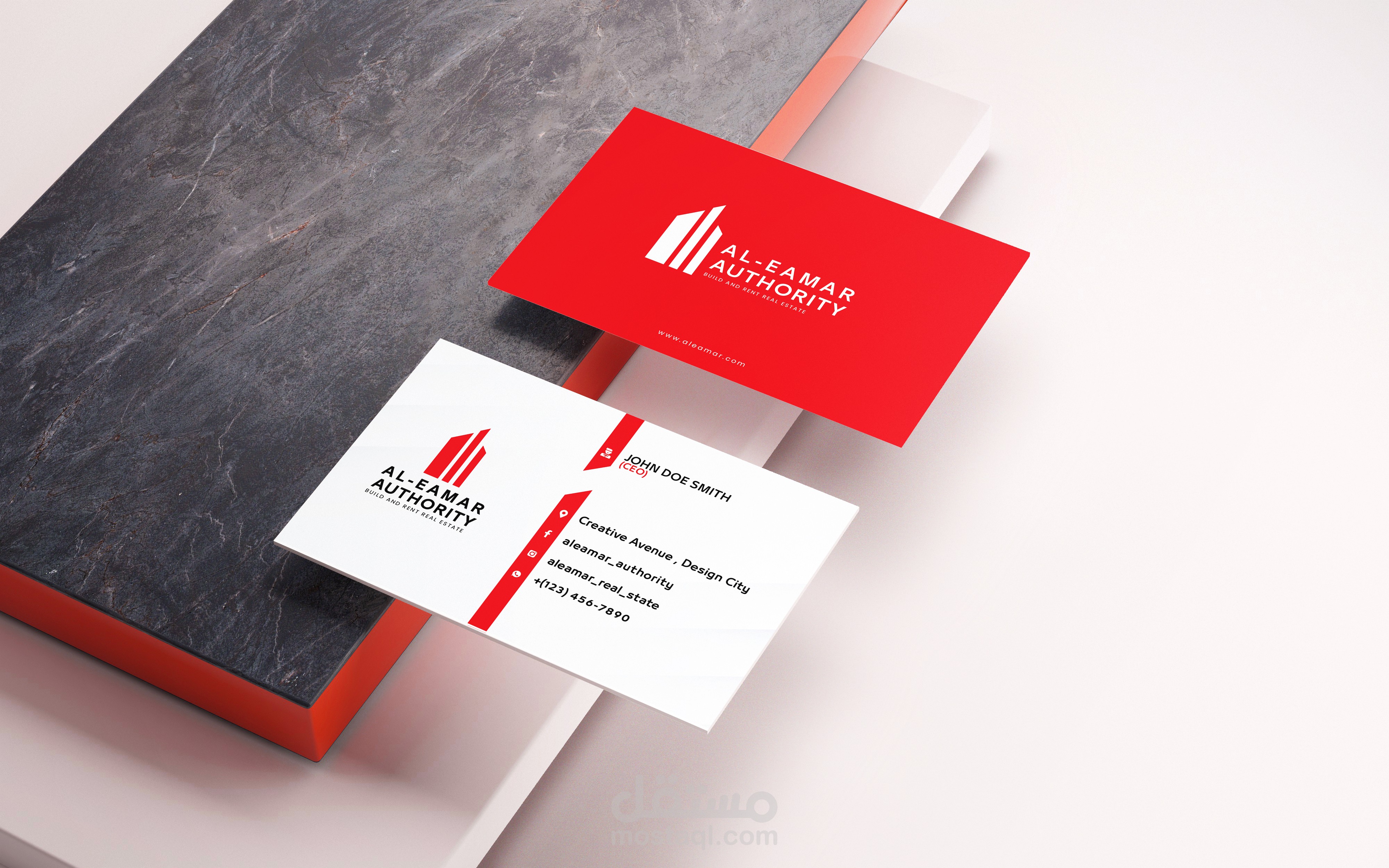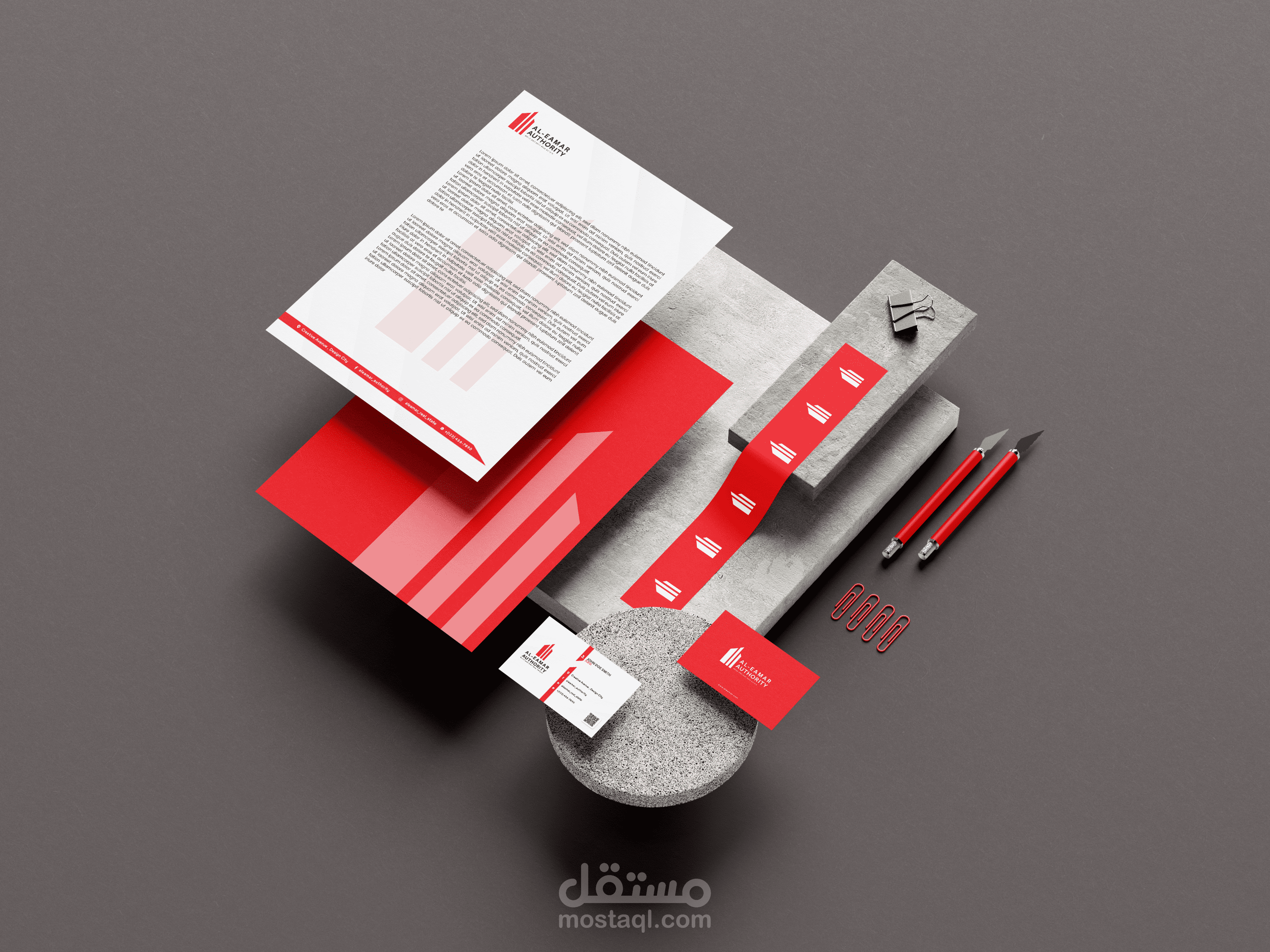 - اللون الأحمر: اللون الأساسي، يرمز للطاقة، والشغف، والإصرار—وهي قيم تتماشى مع مهمة شركة العمار.