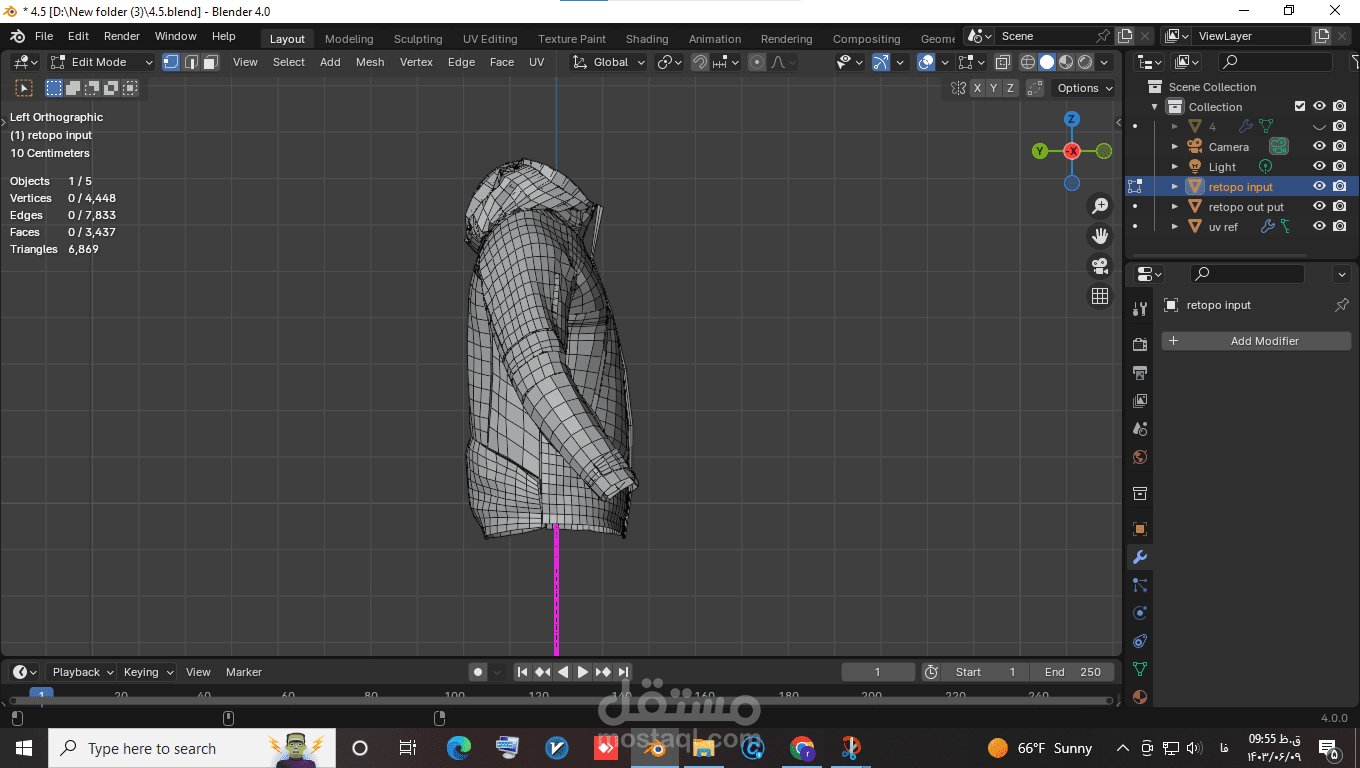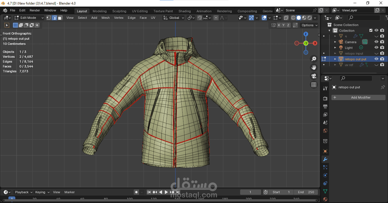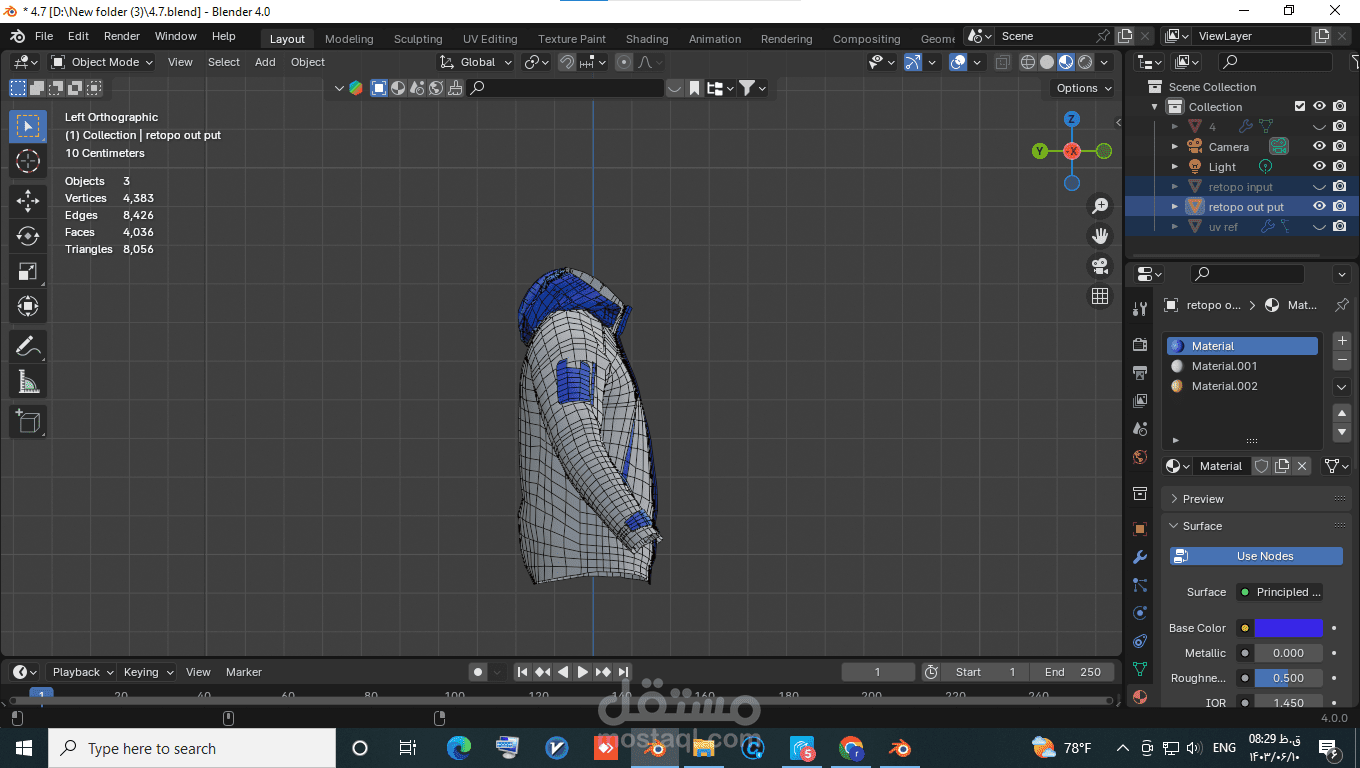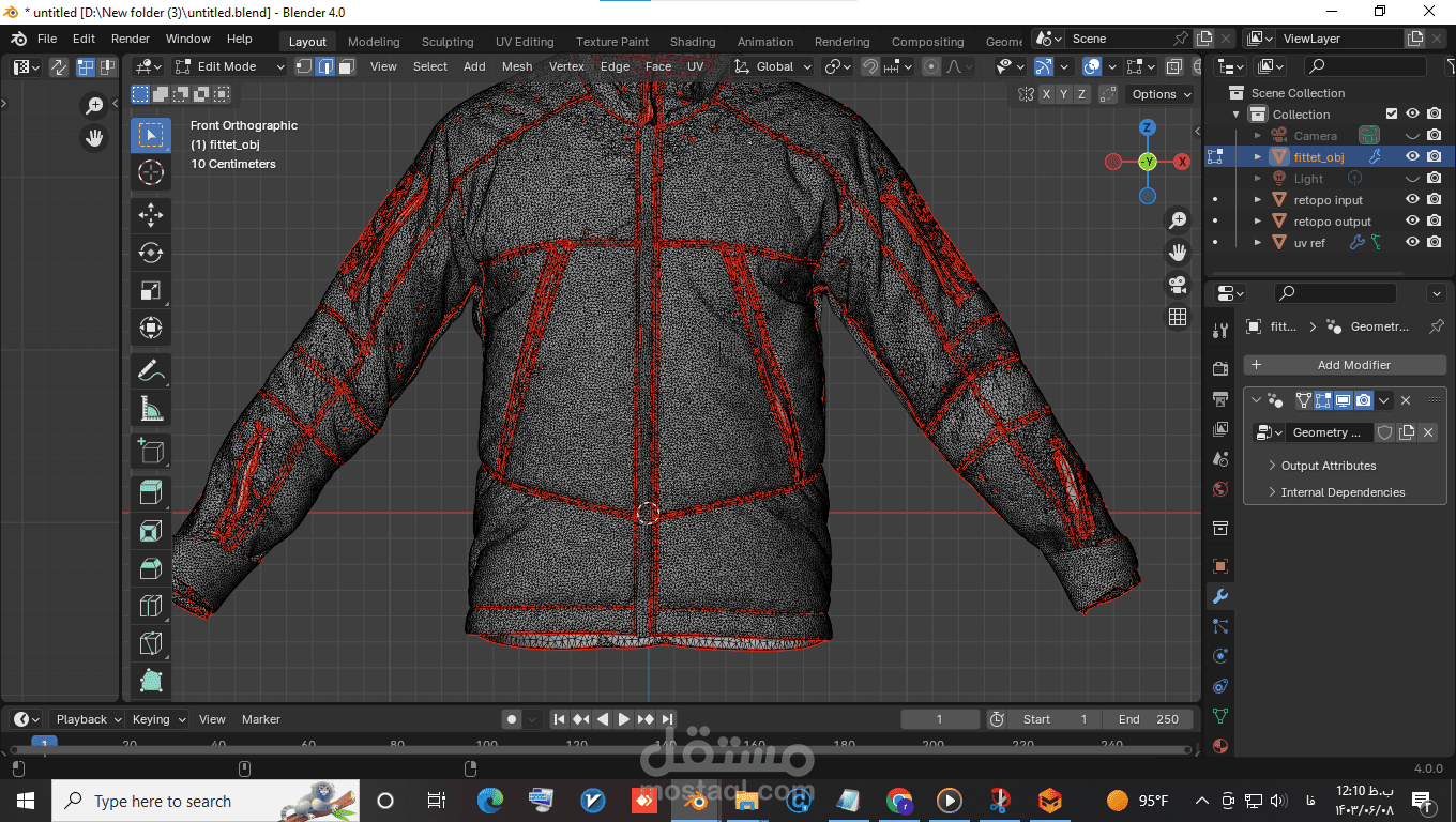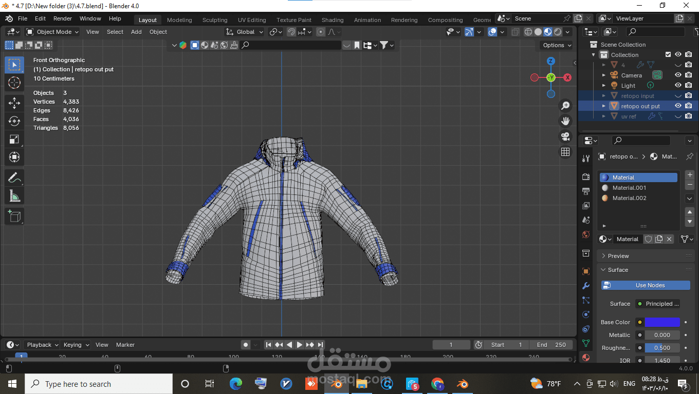 This hoodie model, originally created in Marvelous Designer and unwrapped, had an extremely high polygon count that caused issues during gameplay. To address this, I performed retopology in Blender using Geometry Nodes, significantly reducing the polygon count while maintaining the quality of the model. This process optimized the model, making it more suitable for use in games and other platformspattern, cut and finally sewed.