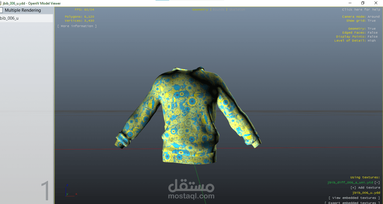For the creation of these models, I used Blender. The process began by importing the clothing model, originally created in Marvelous Designer, into Blender. In Blender, the model was reconstructed to ensure it had quad topology and a low polygon count. Then, weight transfer was performed, followed by material application. Finally, the clothing was tested in a FiveM server simulation to ensure it performed well during movement.