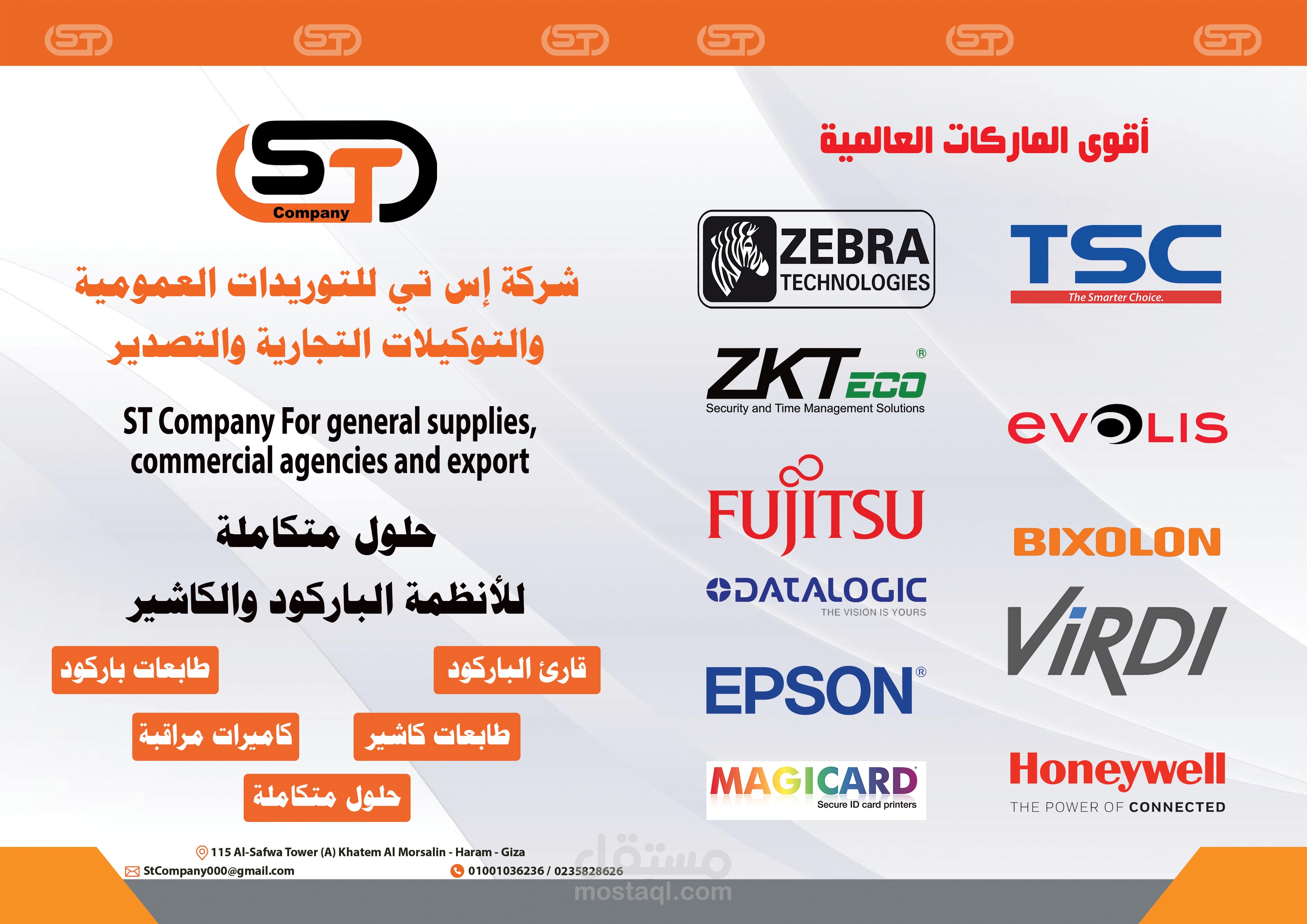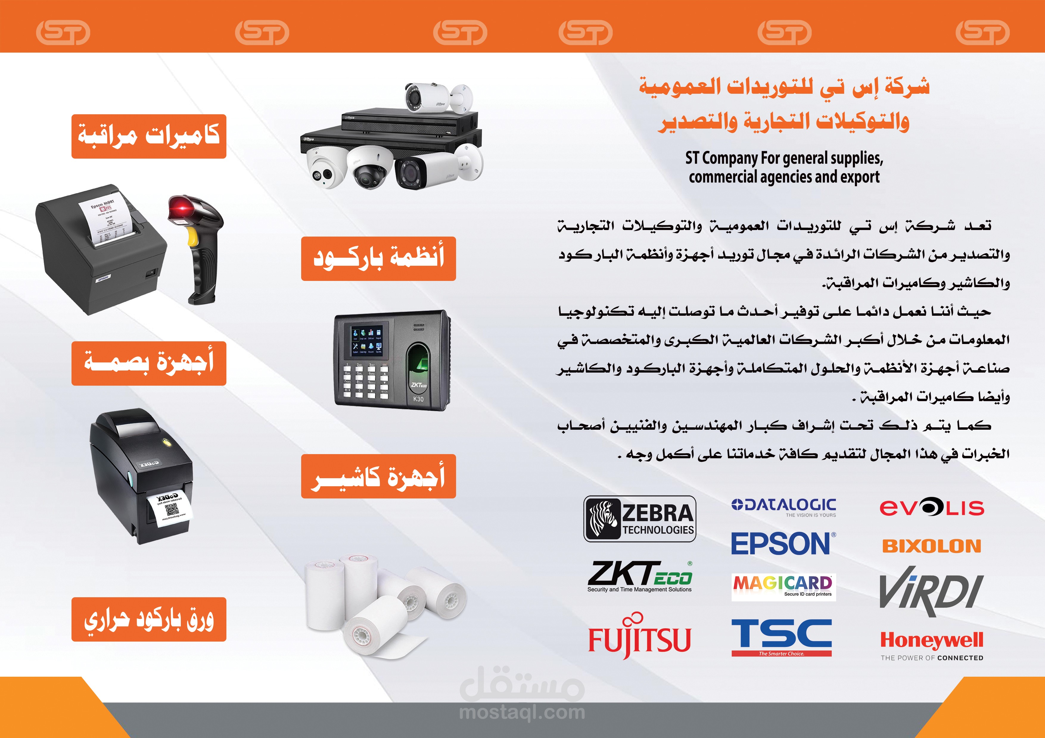 تصميم بروشور لشركة أنظمة باركود وكاشير بمقاس A4