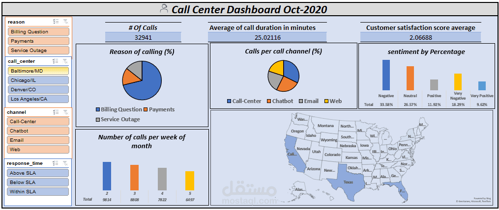 call center dashboard باستخدام الاكسيل و الباور كويرى