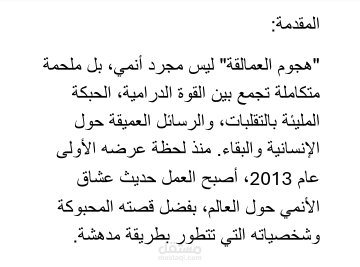 "هجوم العمالقة" ليس مجرد أنمي، بل ملحمة متكاملة تجمع بين القوة الدرامية، الحبكة المليئة بالتقلبات، والرسائل العميقة حول الإنسانية والبقاء. منذ لحظة عرضه الأولى عام 2013، أصبح العمل حديث عشاق الأنمي حول العالم، بفضل قصته المحبوكة وشخصياته التي تتطور بطريقة مدهشة.
