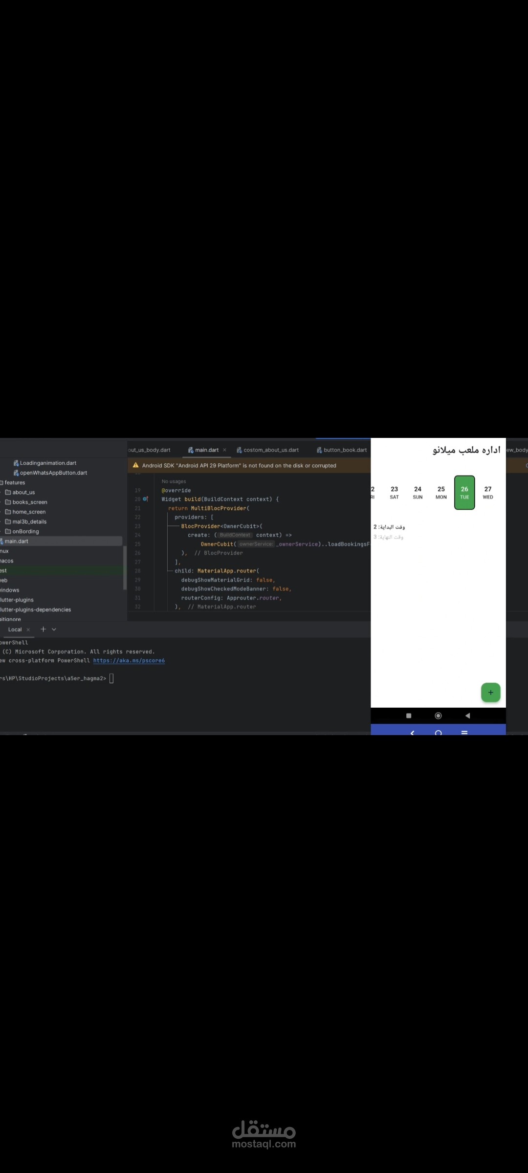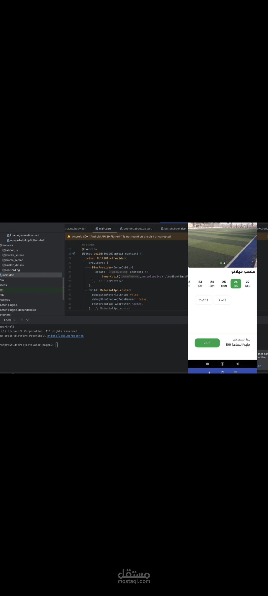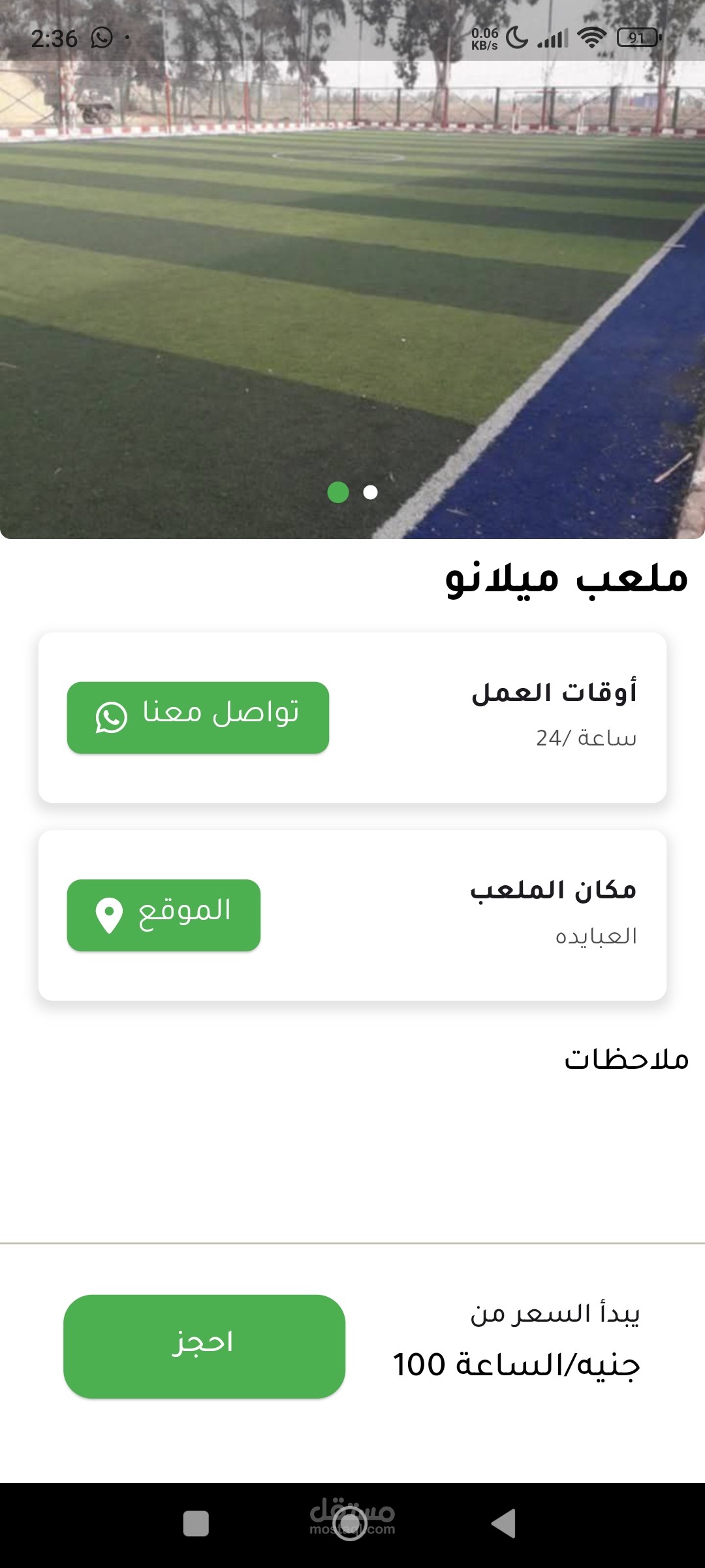 برنامج ل حجز الملاعب الخماسي يتكون من نسختين نسخه ل صاحب الملعب للتحكم ف المواعيد و سعر الحجز ونسخه ل لمستخدم ك يري المواعيد المتاحه و يختار طرق الدفع
