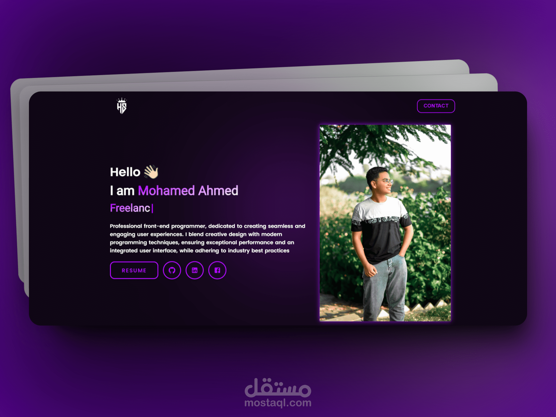 يمكنني تخصيص هذا التصميم ليعكس هوية أي مطور ويب أو مصمم جرافيك. تواصل معي لإجراء التعديلات أو لمزيد من المعلومات.