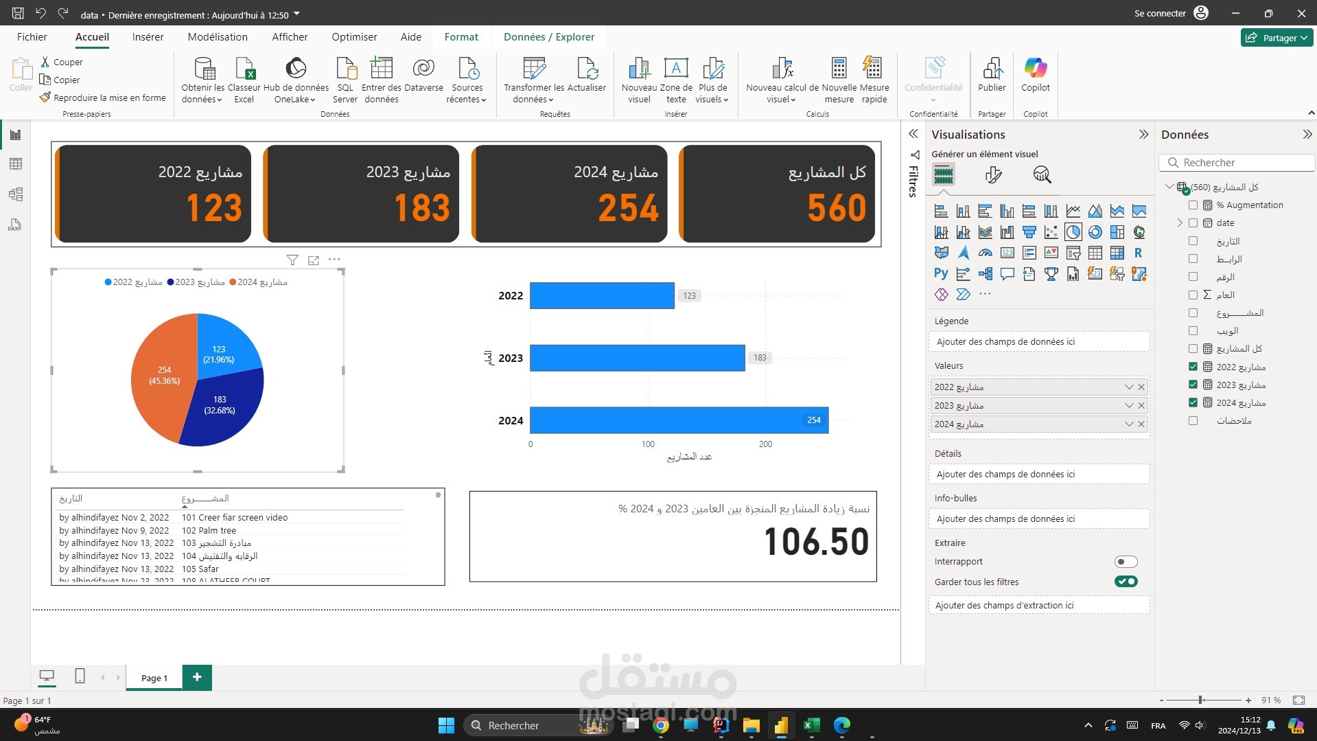 تفريغ روابط مشاريع من google drive الى ملف ايكسل ثم عمل تحليل واستخراج معارف من المعطيات مع عمل dashboard ب Power Bi