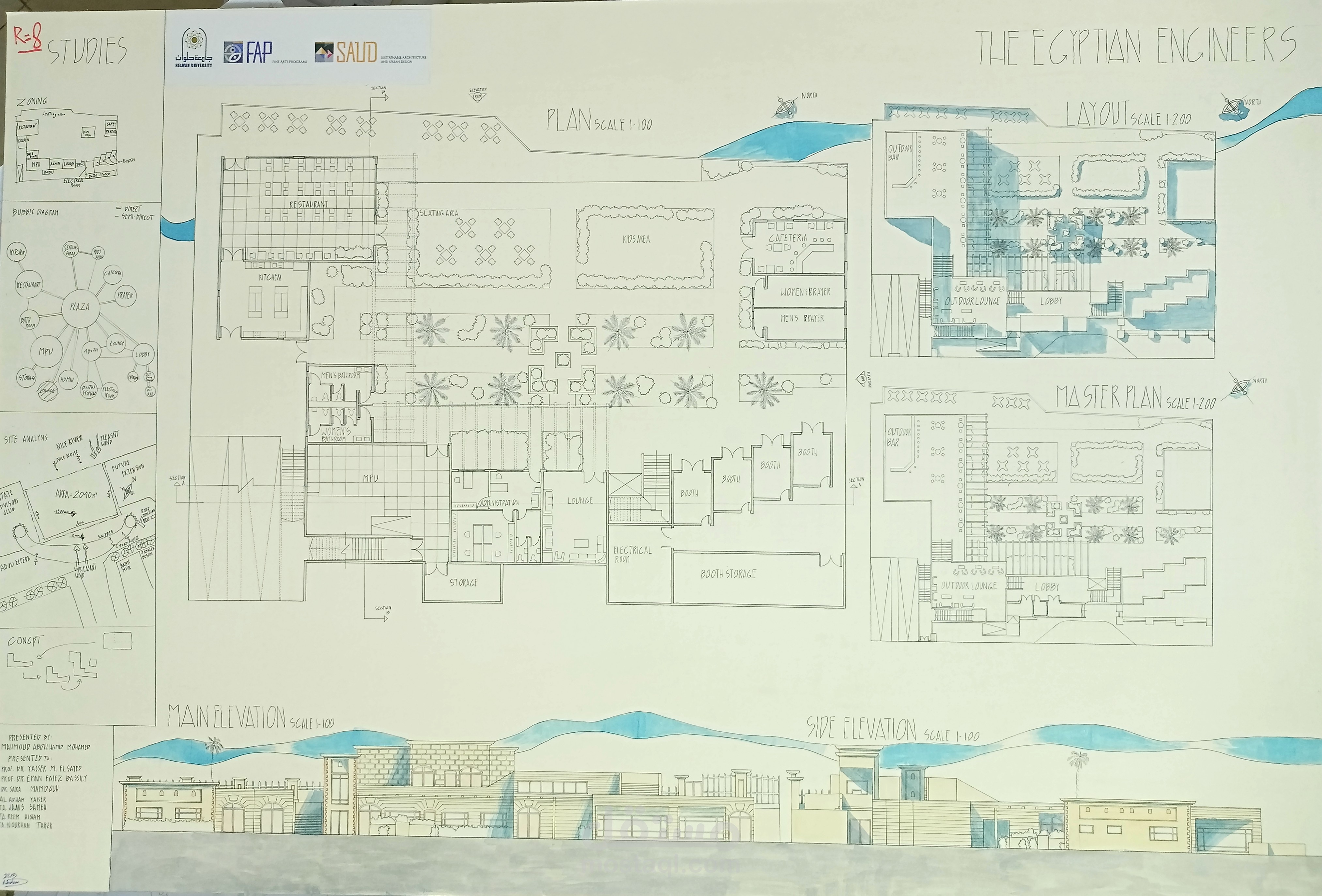 This architecture project is manual representation of the proposed development for the Egyptian Engineer's Syndicate, the design emphasizes functional spaces tailored to the needs of engineers, such as conference halls and collaborative zones. The project incorporates traditional Egyptian architectural motifs blended with contemporary design elements to reflect a balance between heritage and innovation.