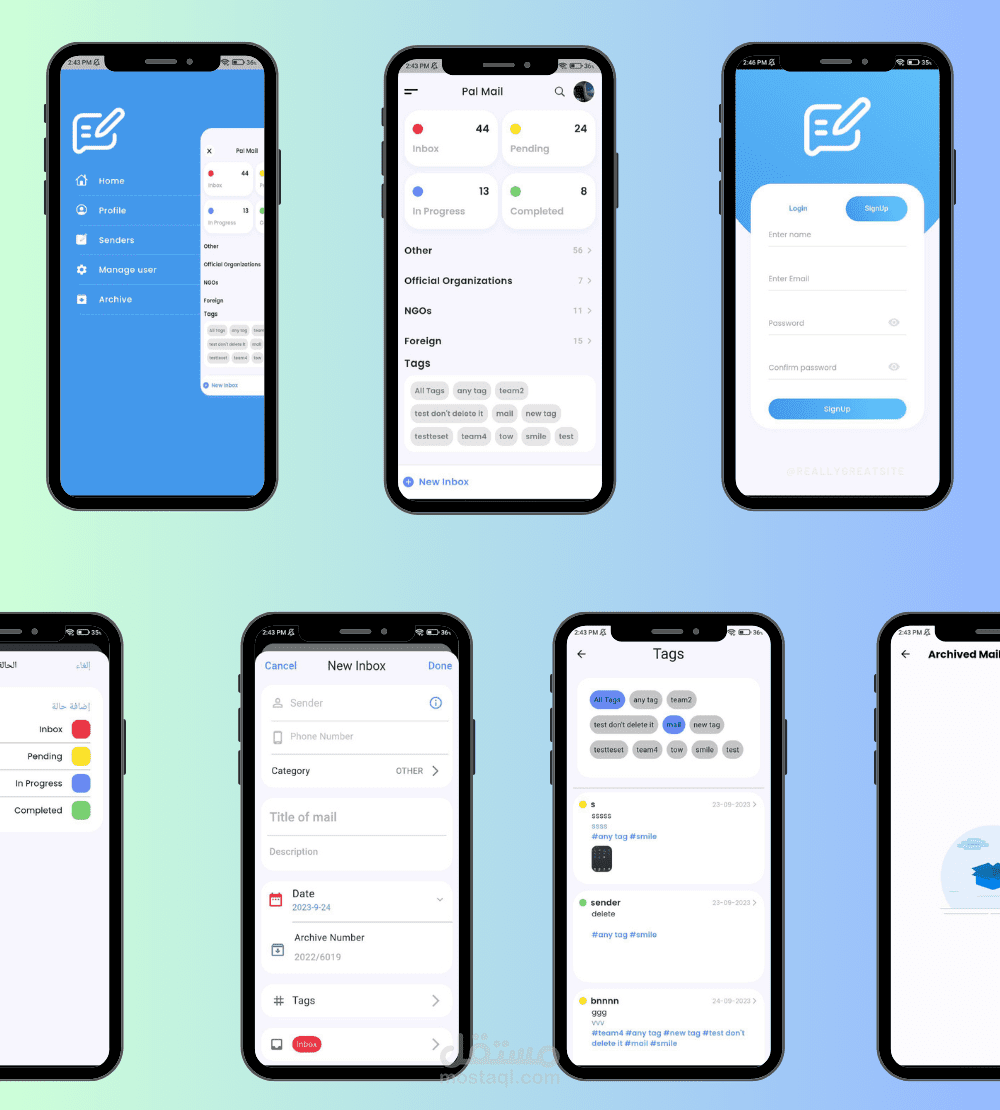 The "Pal Mail App" mail management system is an online application for both employees and users. Organizations receive mail requests, specifically complaints, from various groups: government institutions and ministries, organizations and associations, companies, and individuals.