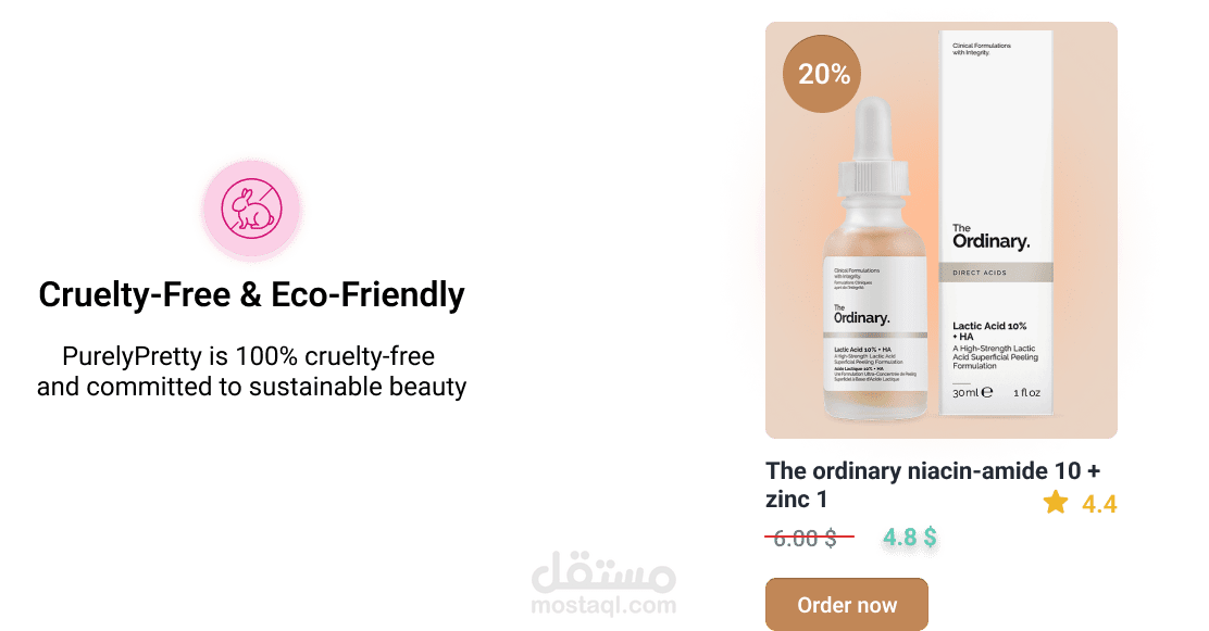 The design highlights a modern and user-friendly approach while emphasizing the brand's clean, ethical, and affordable beauty values.