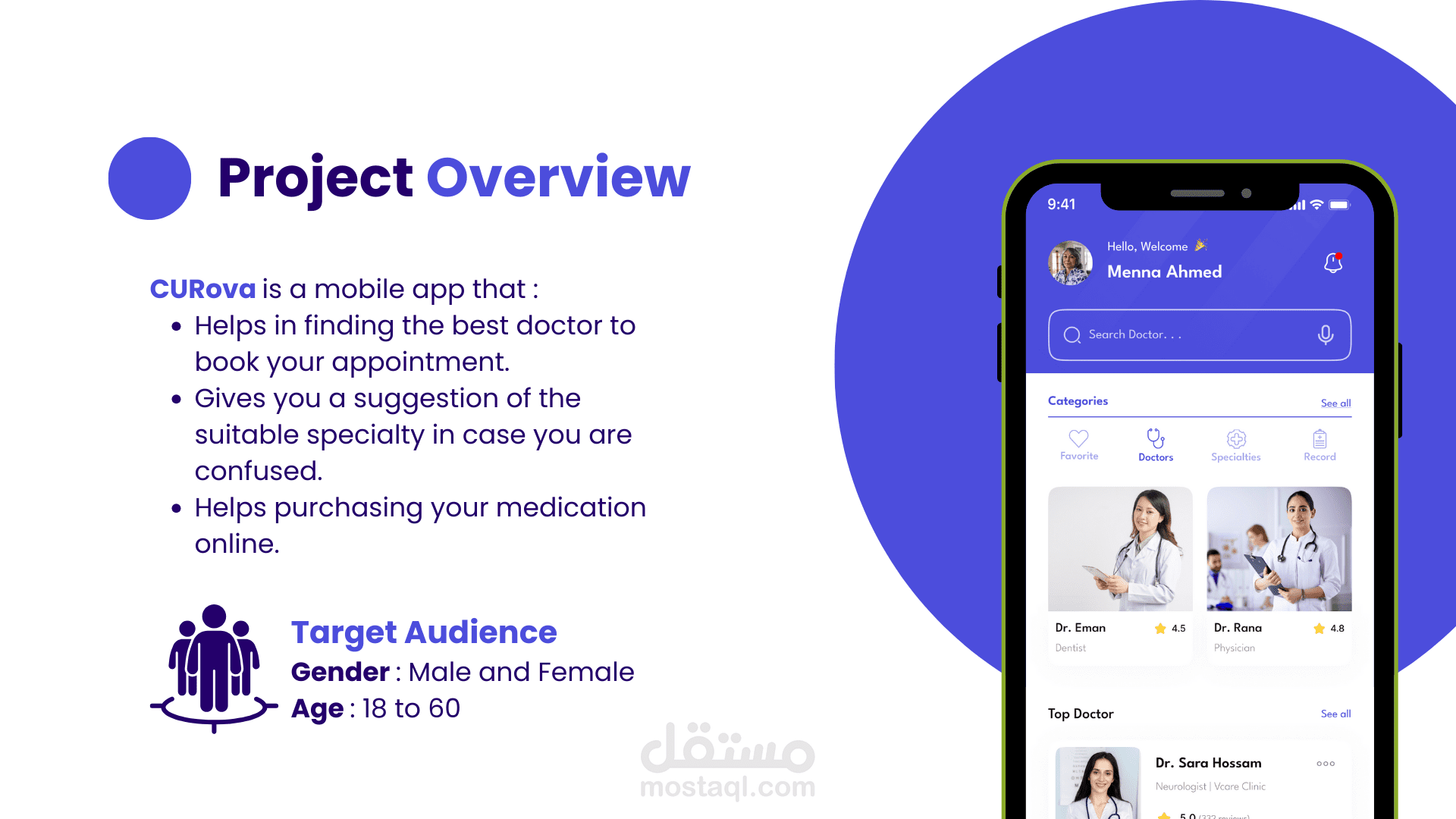 قمت بتصميم CURova لتقديم تجربة مريحة وفعالة للمستخدمين تلبي احتياجاتهم الطبية الشاملة. من حجز مواعيد مع الأطباء، وإدارة الوصفات الطبية، إلى شراء الأدوية من الصيدليات، تم بناء التطبيق ليكون نقطة تجمع لكل ما يتعلق بالرعاية الصحية.