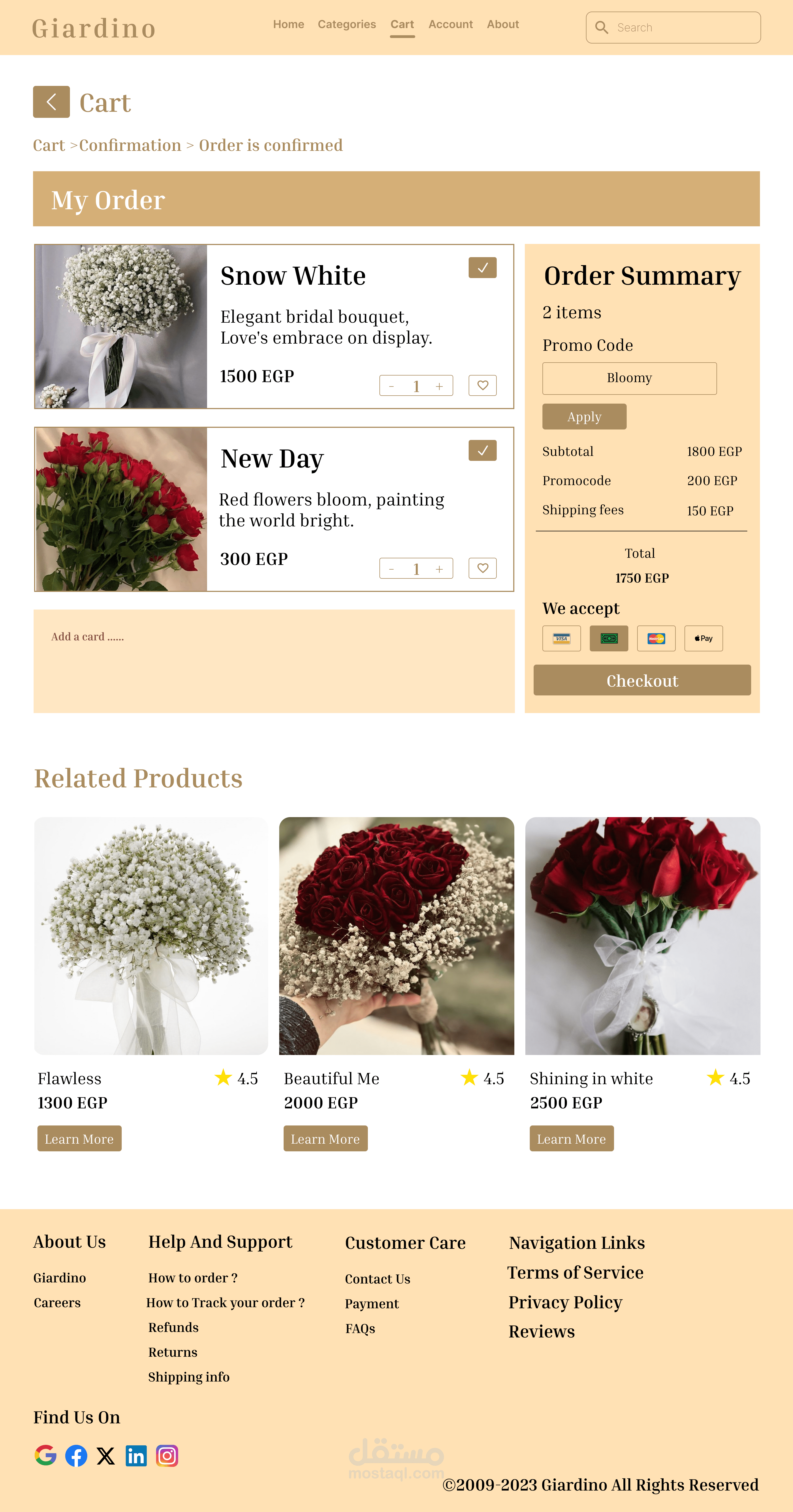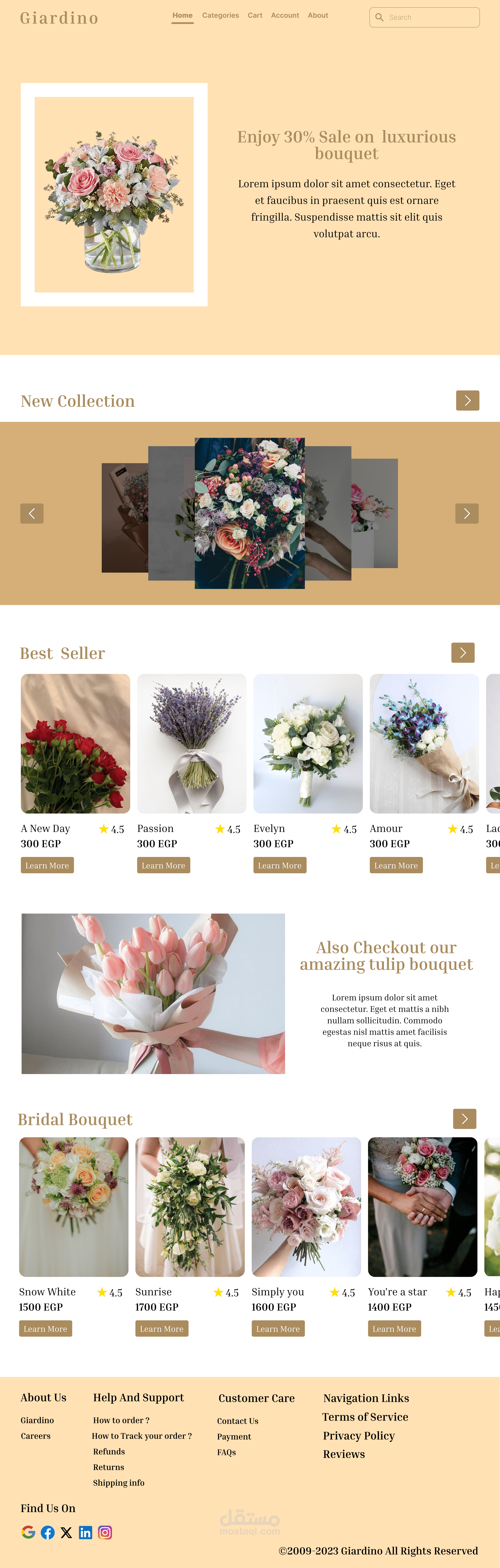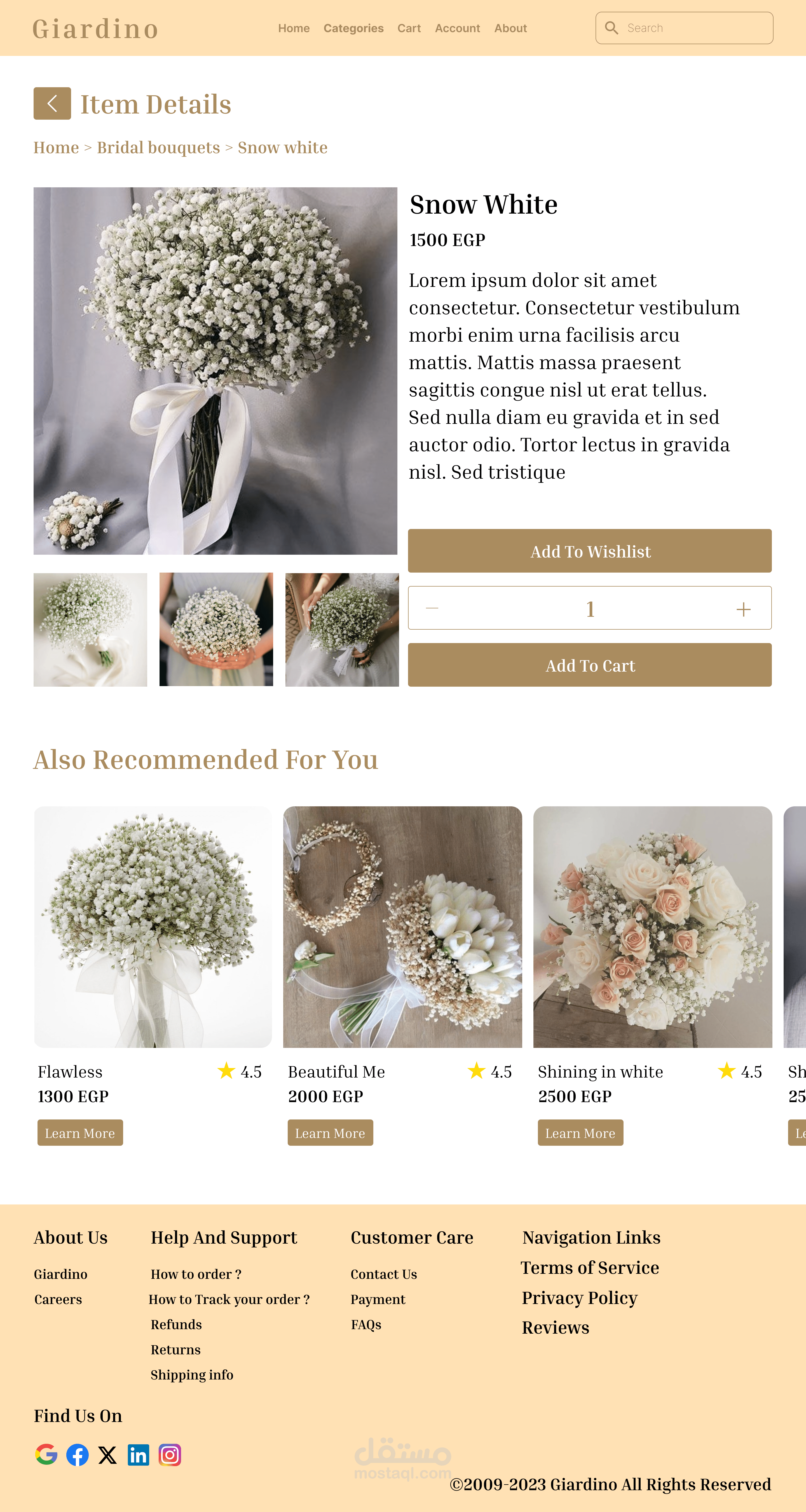 Giadino is a florist website designed to showcase exquisite floral arrangements and provide a seamless shopping experience for customers. The platform highlights the beauty and artistry of flowers while making it easy for users to browse, select, and order bouquets for any occasion.