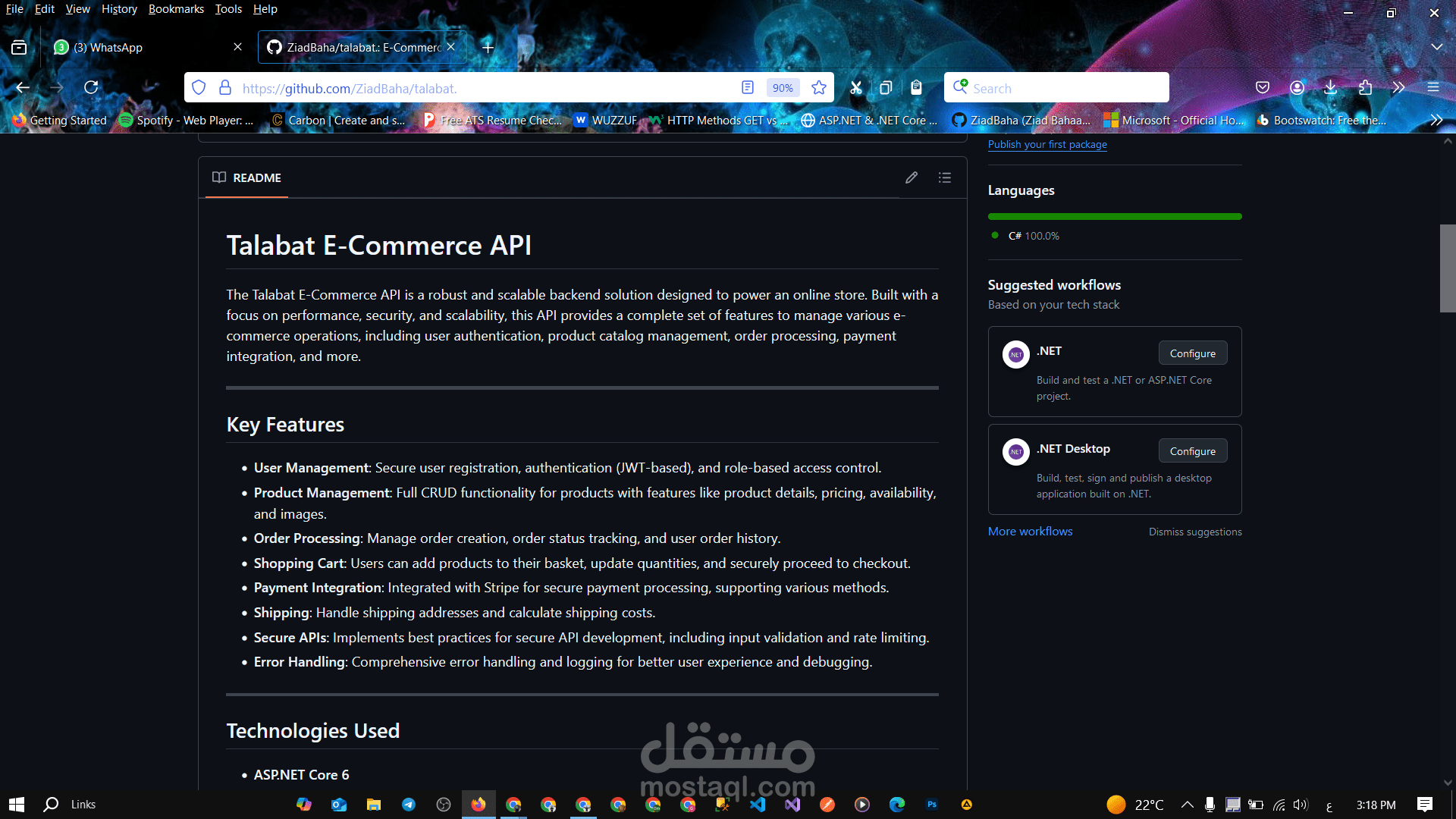 واجهة برمجة التطبيقات Talabat E-Commerce API هي نظام خلفي متكامل وقابل للتطوير لدعم منصات التجارة الإلكترونية. تم تصميمها لتسهيل إدارة الحسابات، المنتجات، الطلبات، المدفوعات، وغيرها من العمليات. تعتمد الواجهة على ASP.NET Core 6 وتستخدم مبادئ تصميم حديثة لضمان الأداء العالي والقابلية للتوسع.