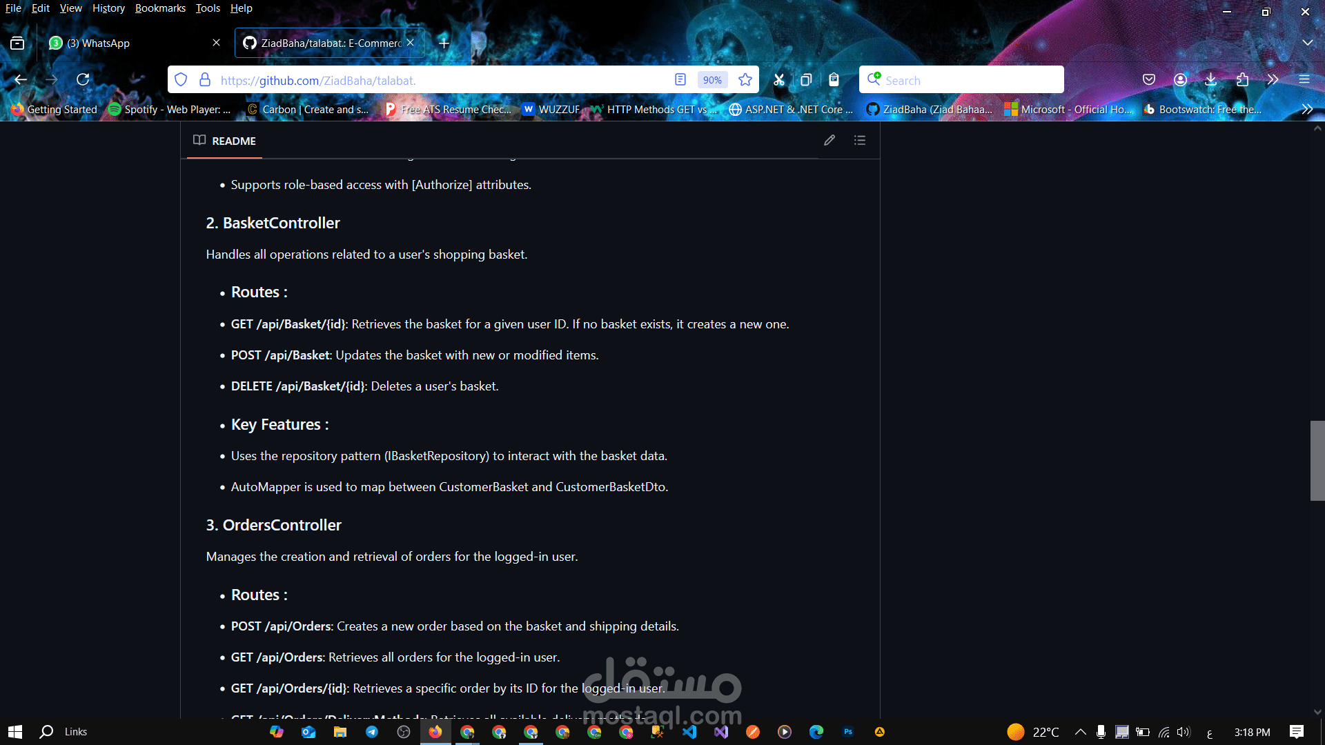 GET /api/Orders: استرجاع جميع الطلبات للمستخدم.
