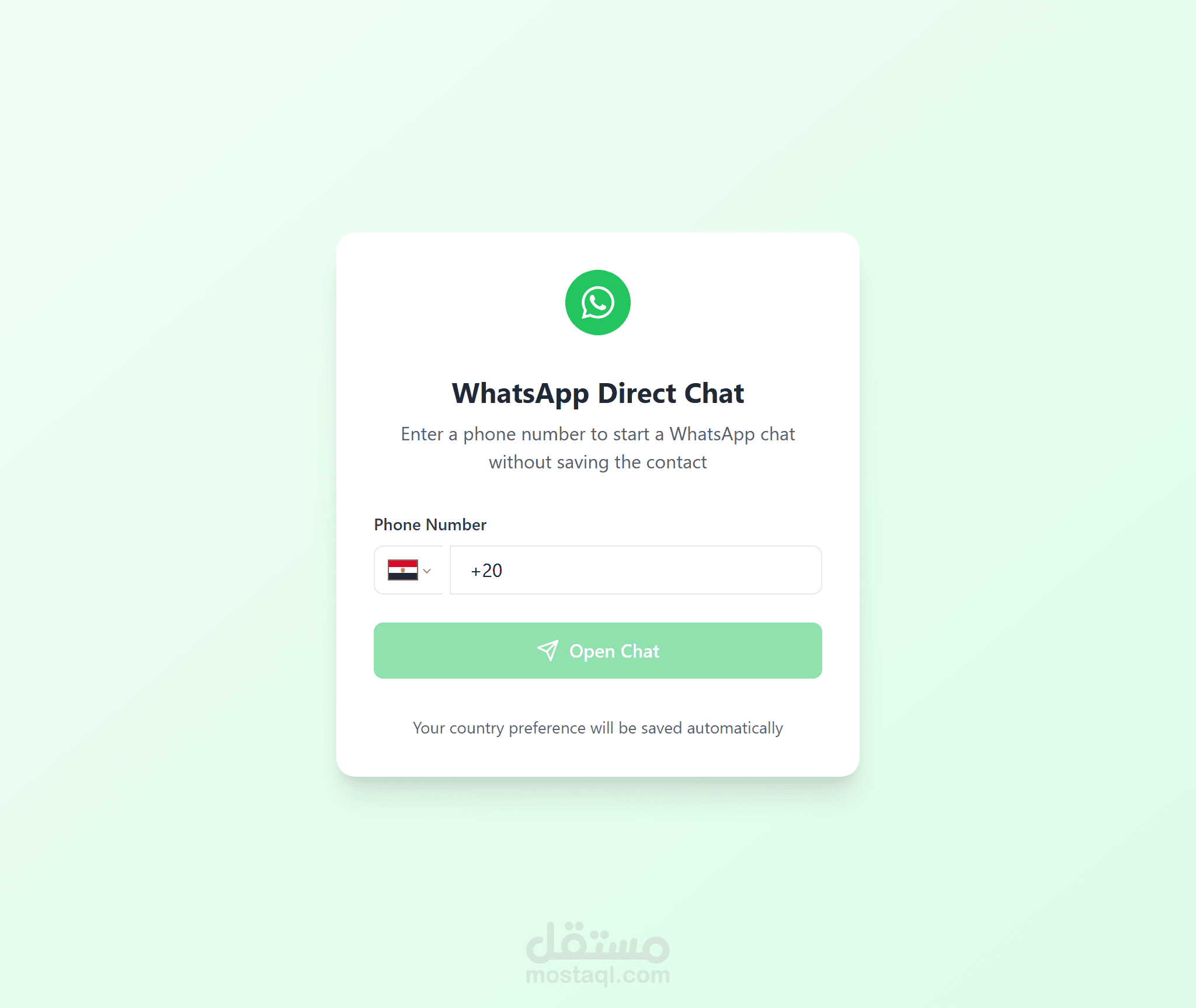 تواصل فوري: افتح محادثة مباشرة على الواتساب بمجرد إدخال الرقم.